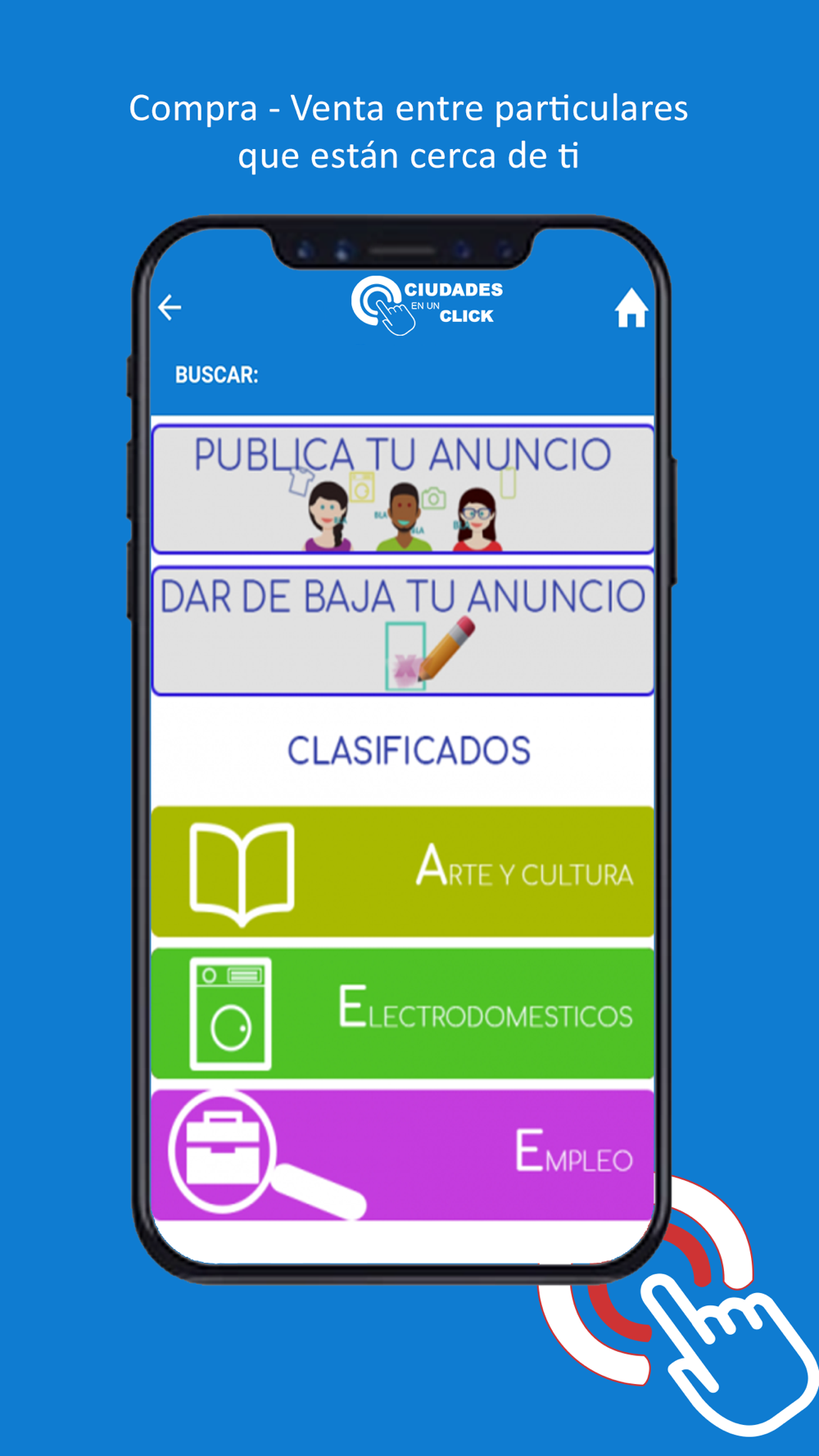 • Apartado de "clasificados": compra venta entre particulares cerca de ti.