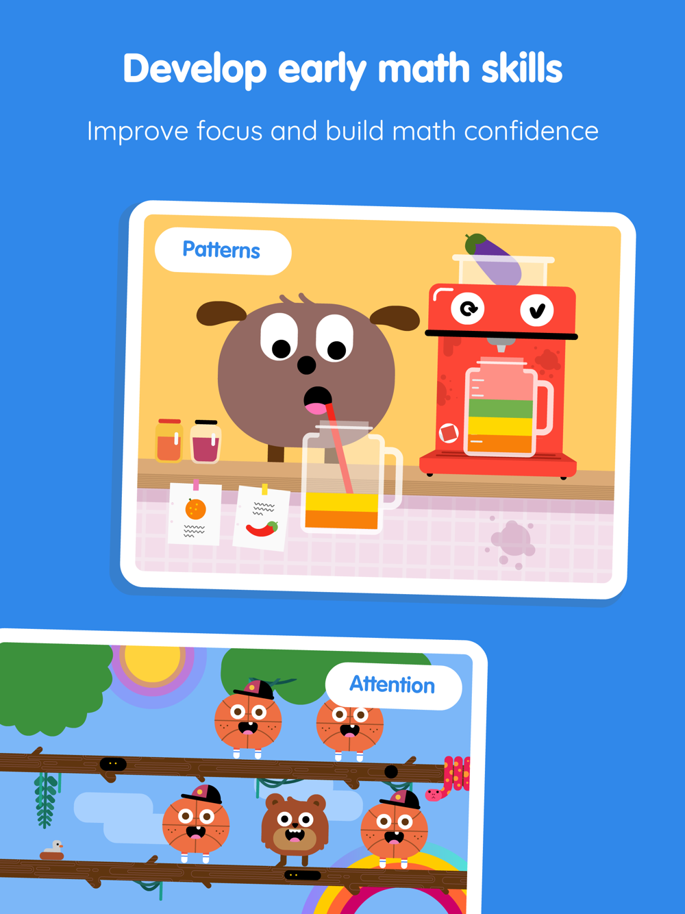 • Practice numbers, shapes, patterns, sequencing, sorting, and more
