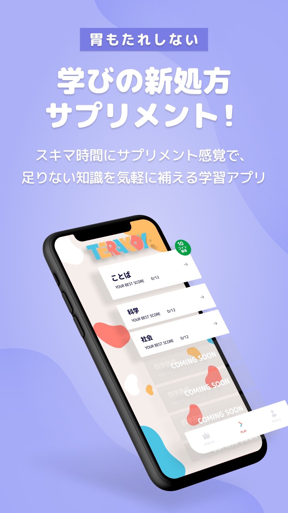 サプリメントで足りない栄養素を補うように、スキマ時間に気軽に知識を補うことができるアプリです。