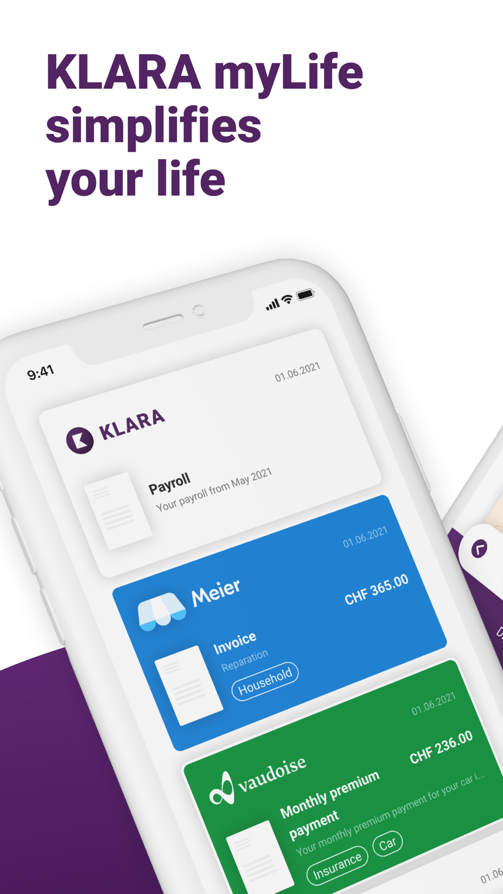 KLARA myLife simplifies your life. Because from now on, you can have your post sent securely and digitally to your smartphone. Pay your bills directly from the app – with just a few taps.