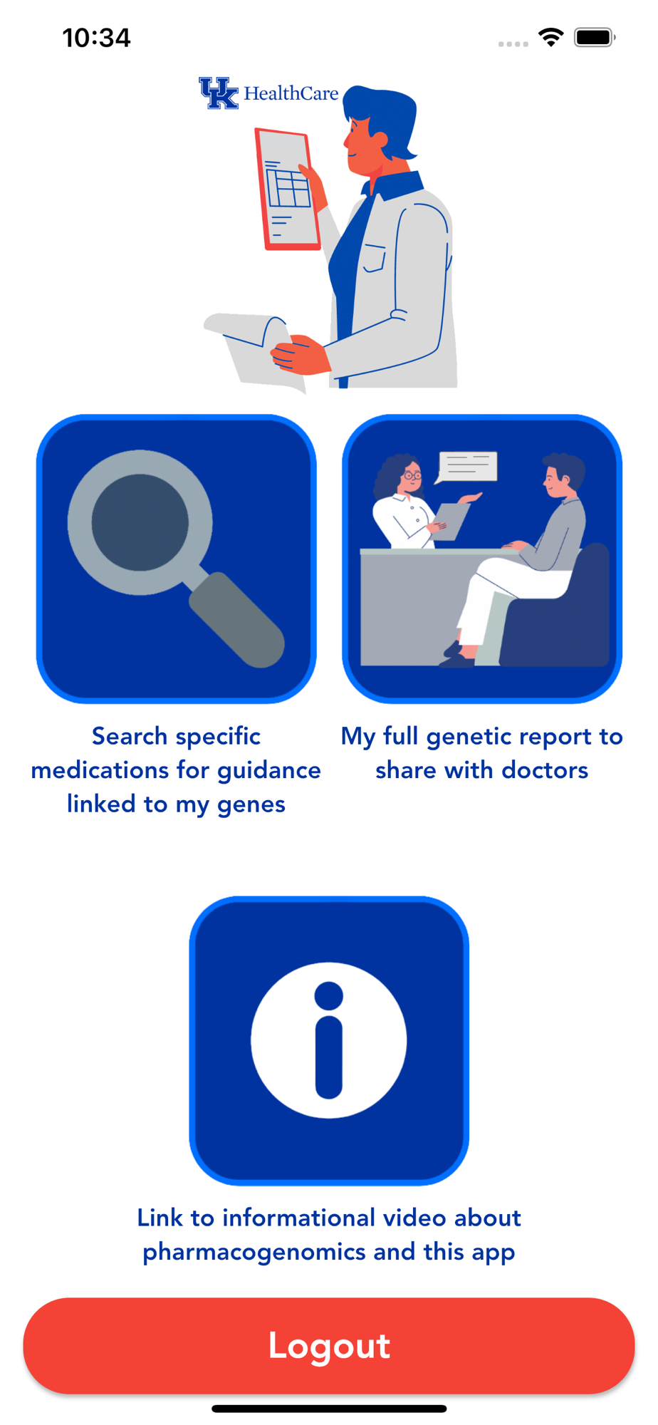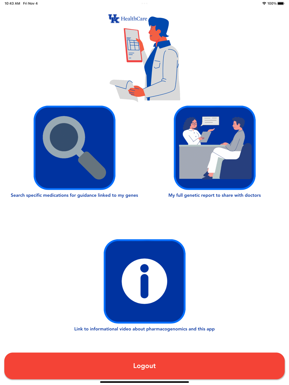 This app enables participants in pharmacogenomics studies at the University of Kentucky to review their information securely from the comfort of their own device allowing the user to safely review and even discuss with their doctor at their convenience.