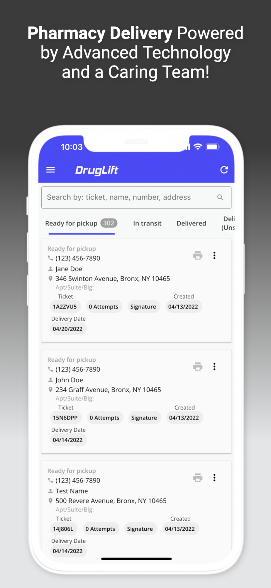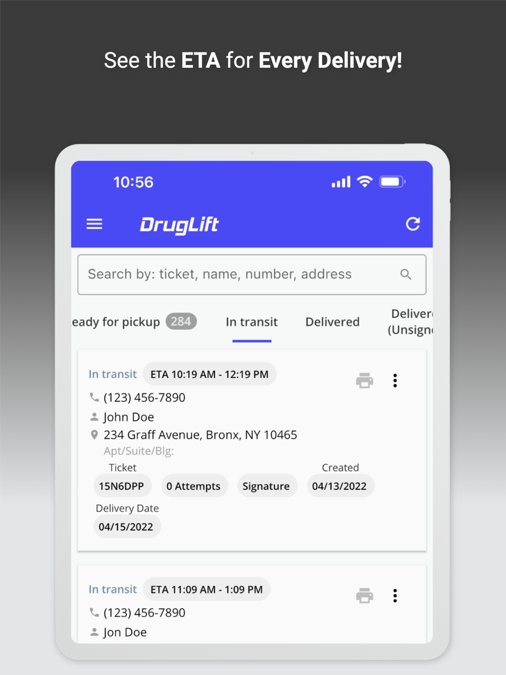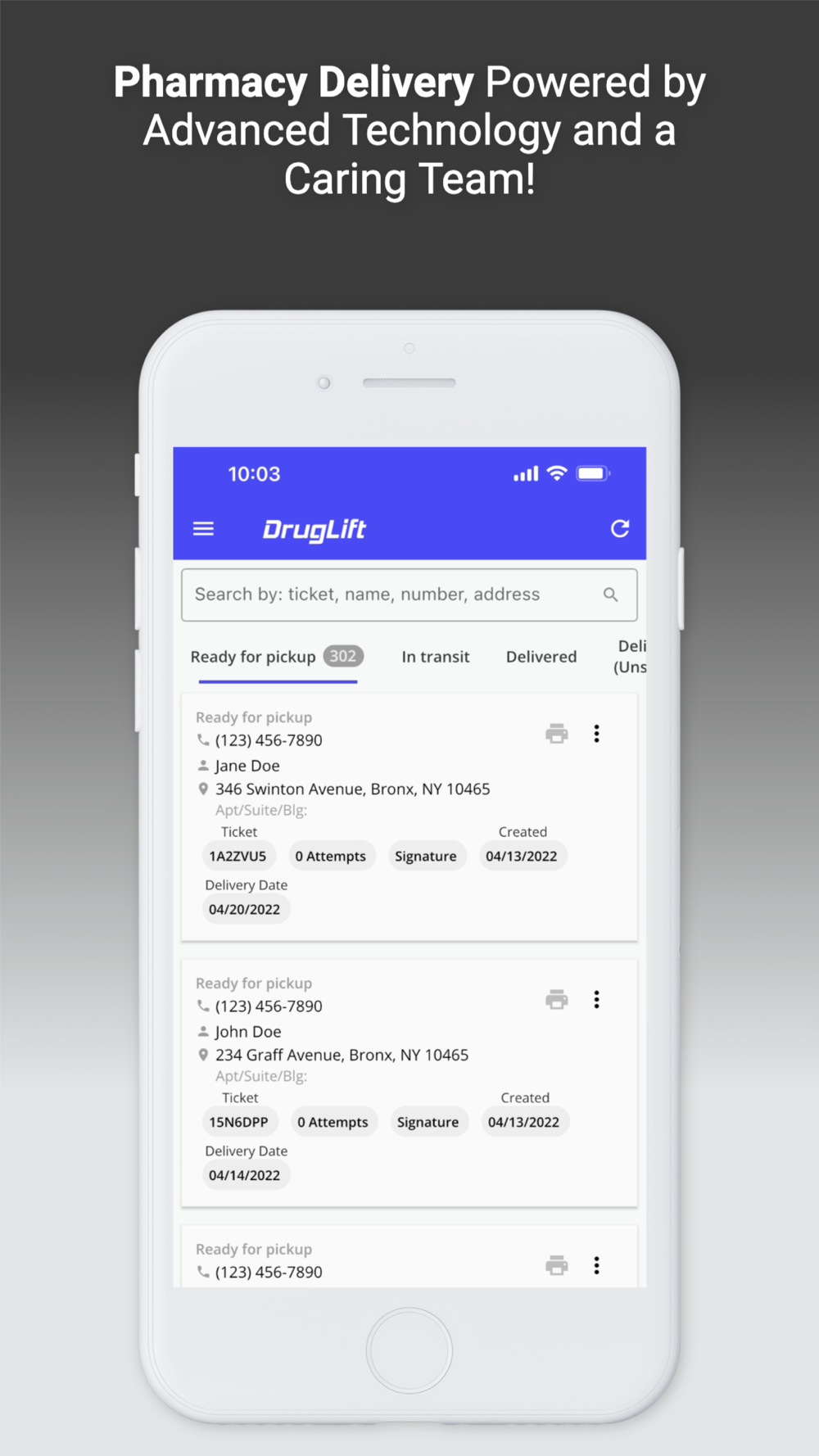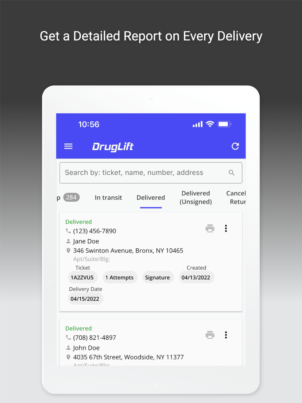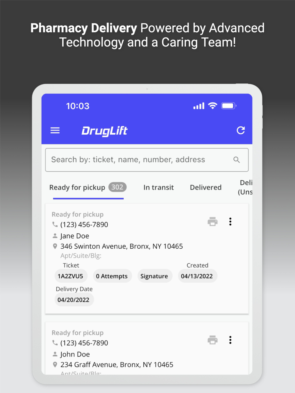 The DrugLift app makes tracking a delivery easy. Stay connected to your patients from the easy to use DrugLift Pharmacy App!
