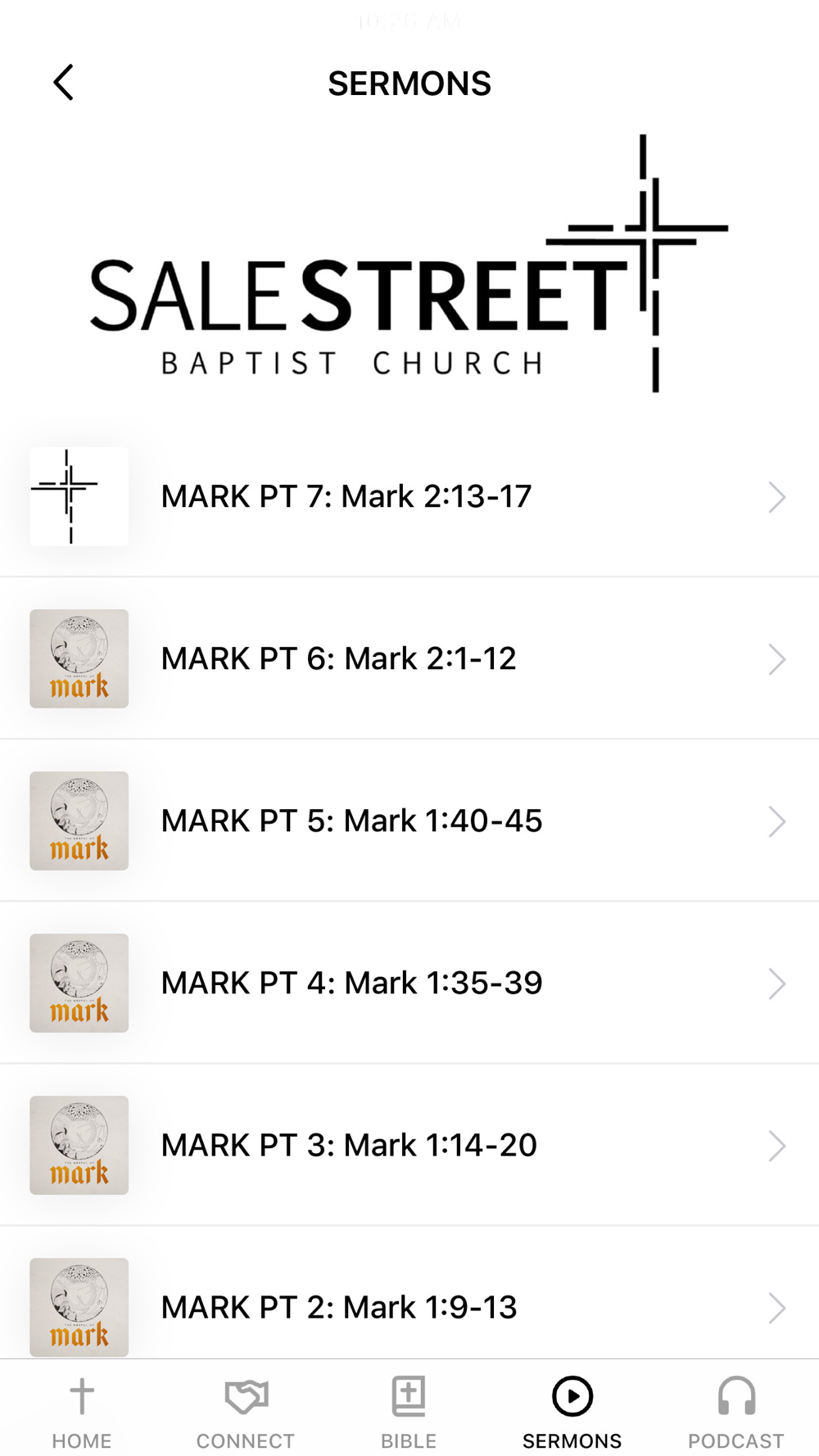 This app will help you stay connected with the day-to-day life of Sale Street Baptist Church. With this app you can: watch or listen to past messages; stay up to date with push notifications; share your favorite messages via Facebook, or email; and download messages for offline listening.