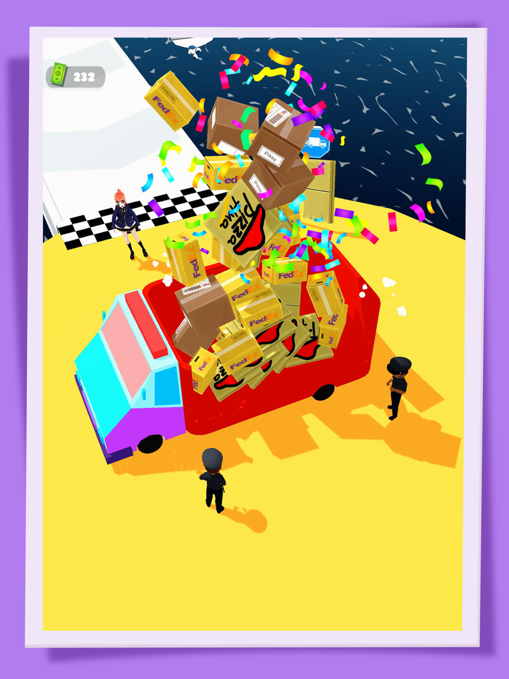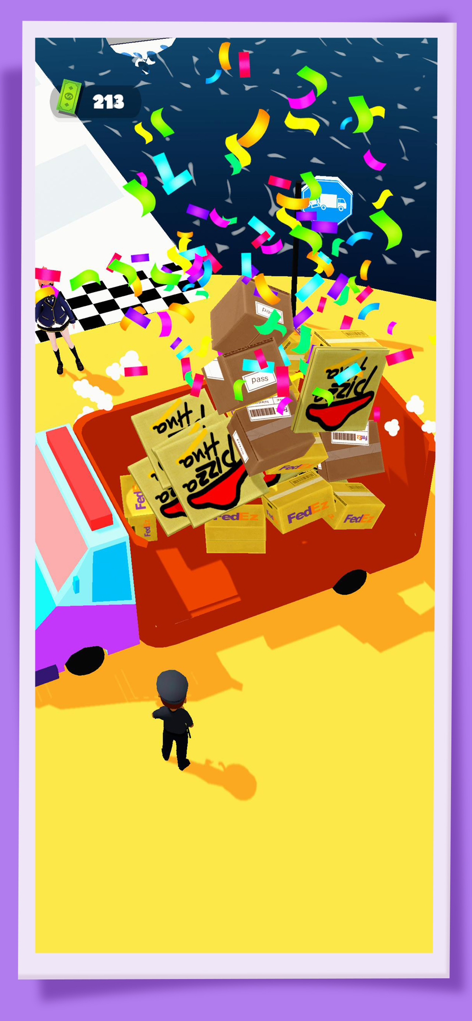 Choose the lowest shelf, go through it, and collect the pizza and courier boxes together and safely deliver it to the destination truck. Become an excellent courier and help your customers through the complicated streets until the end of this epic game. Crash the shelves and load the truck to send away the goods, collect coins and improve your level. At the end, the express delivery of each customer will be delivered safely!