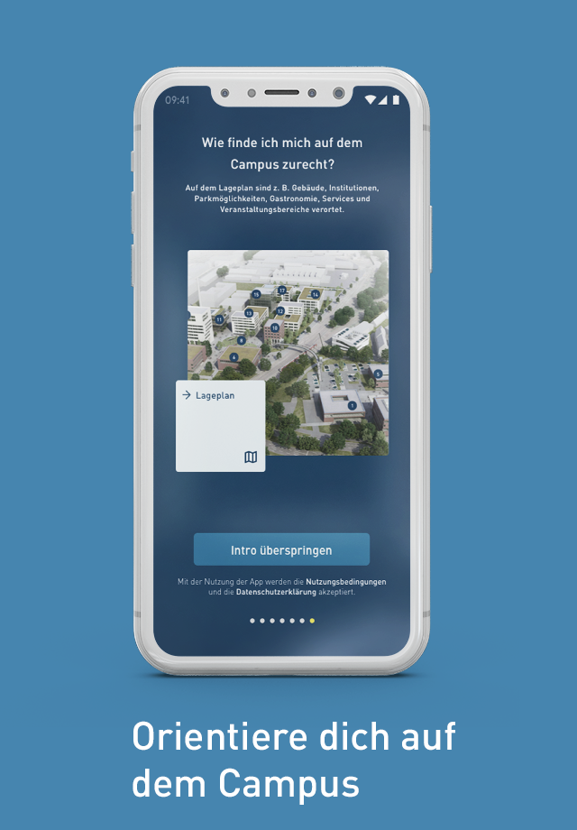 Unverzichtbar für das Leben auf dem Bildungscampus: Rufe die Abfahrten von Bus & Bahn rund um den Campus oder die Belegung der Campus Parkhäuser in Echtzeit ab, recherchiere das Medienangebot der Bibliothek, verwalte deine CampusCard oder informiere dich mittels Lageplan über die Services und Angebote auf dem Gelände.