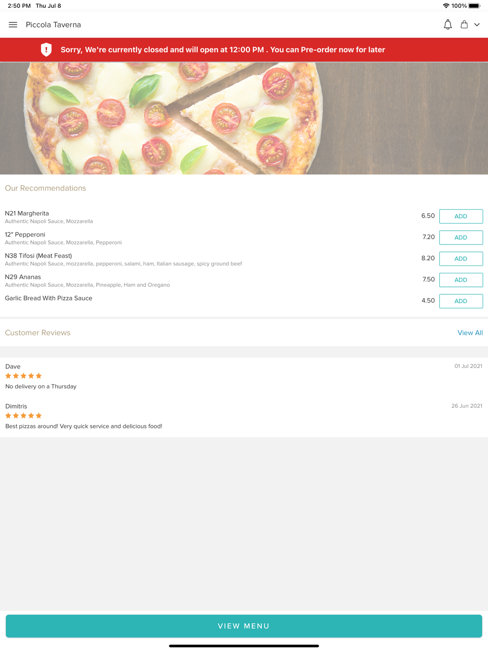 Piccola Taverna in Huddersfield will always be offering great food at affordable prices. Please feel free to browse our new app and place your order online. Remember to check our new online ordering site to get up to date prices and exclusive special offers, limited to our online customers only!