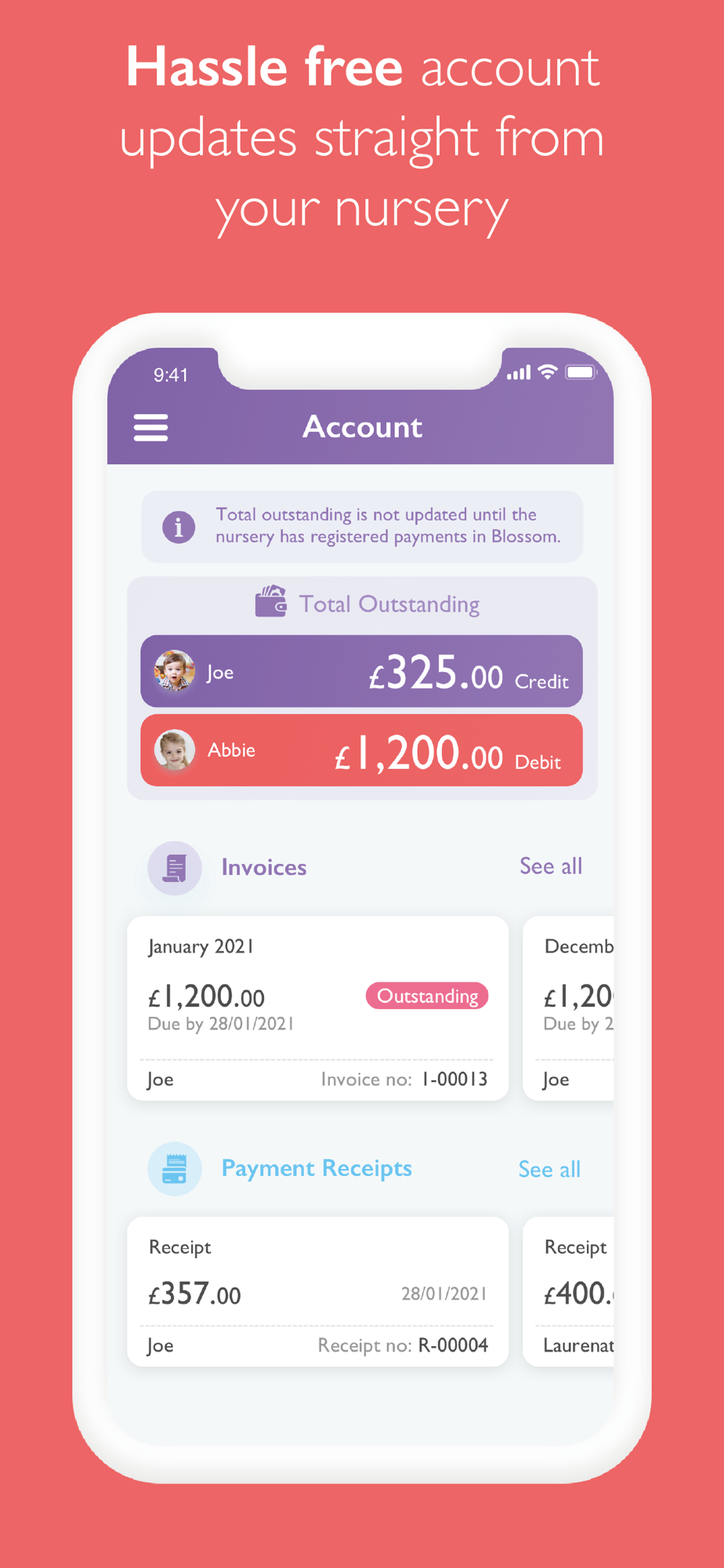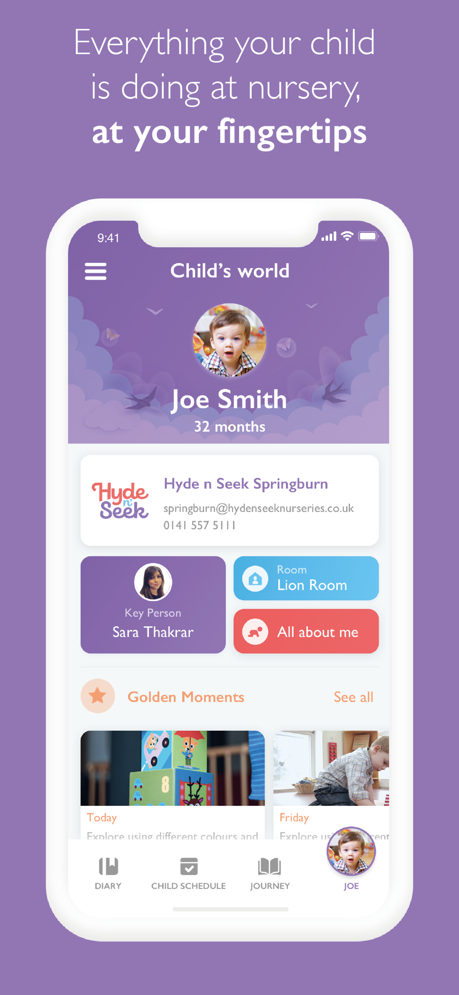The Hyde n Seek's Nurseries App helps to connect parents with their children and the nurseries which look after them. Engage in your child's day with a real-time diary feed, displaying everything from sleeps to activities, snacks to nappy changes. Parents can even share developmental moments from home with the nurseries, creating a stronger communication to support your child in their first years. With a brand-new dedicated account section, you can find your invoice details and payment receipts all in one place.