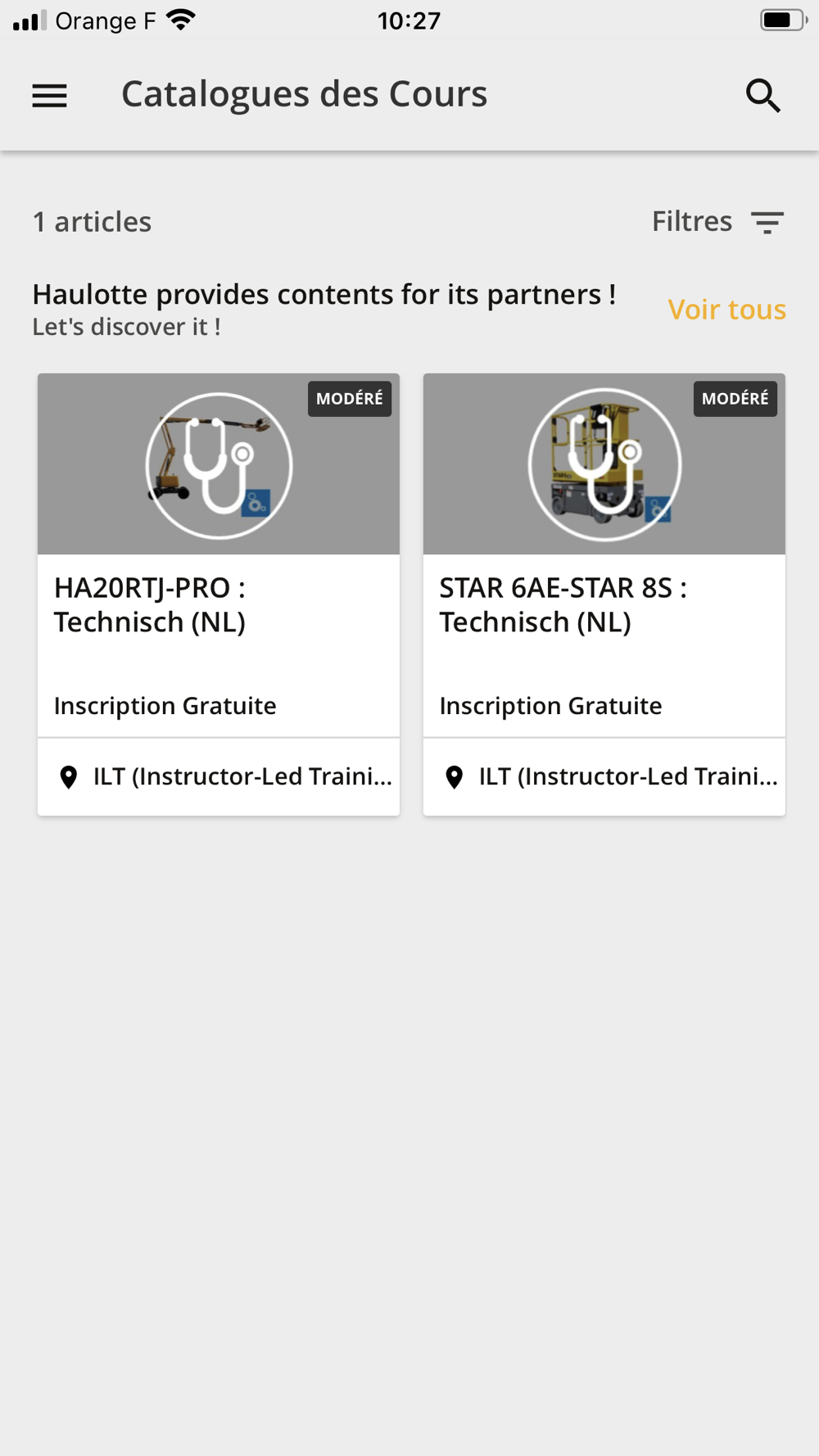 Haulotte Academy apps empowers Haulotte collaborators, customers and partners to access learning content at any time, anywhere. View courses, learning plans and shared content, while tracking your progress both online and offline. Access your content or upload your own photos or videos from your mobile device to share in your communities.