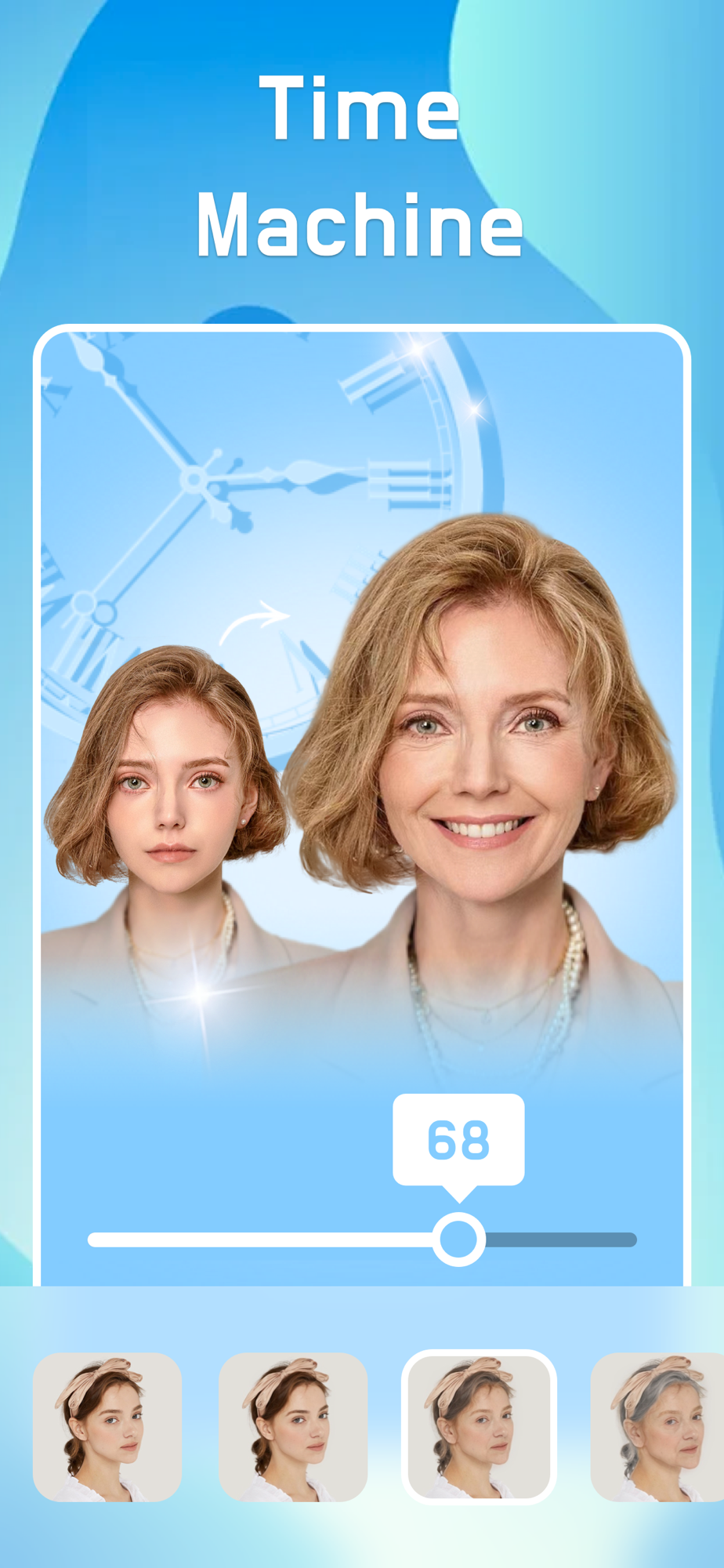- Are you curious about your future look? You can realize your dream with our time machine. Predict your look at the age of 60 or 80, it is up to you!