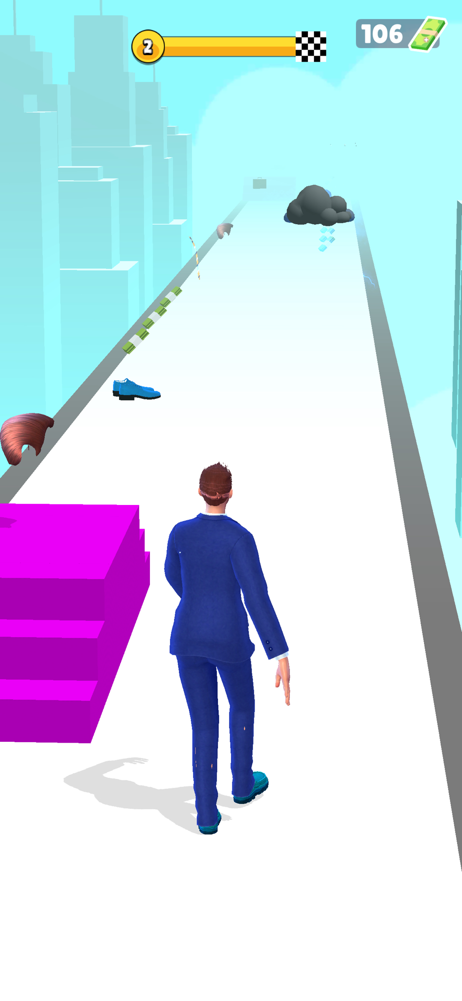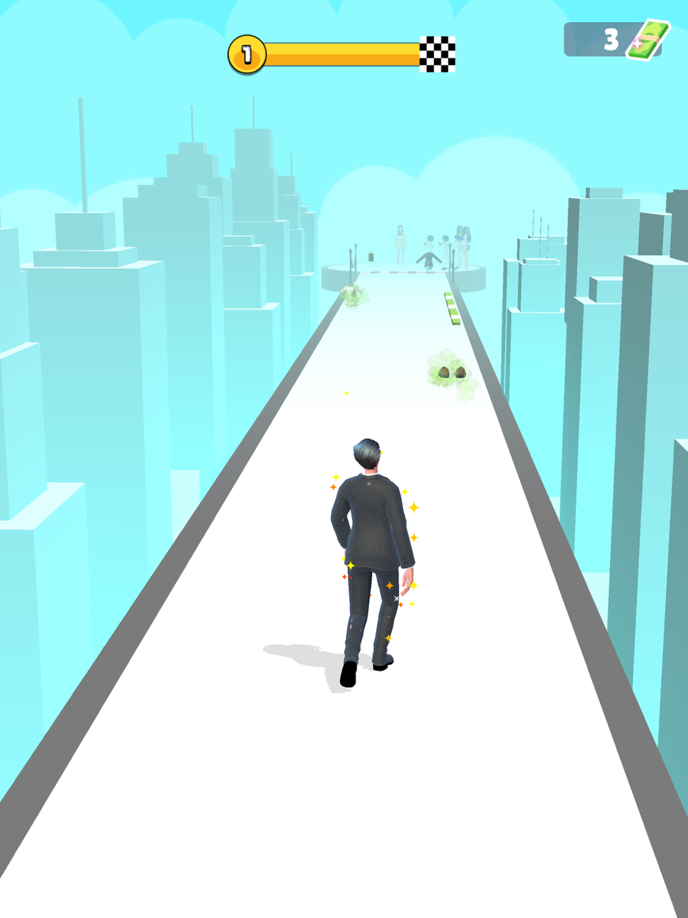 The game begins when the player touches the screen. The camera moves behind the player's back, and the level starts. The player's task is to reach the finish line in the most good-looking condition. Various items are scattered across the level, which can be divided into 2 groups: