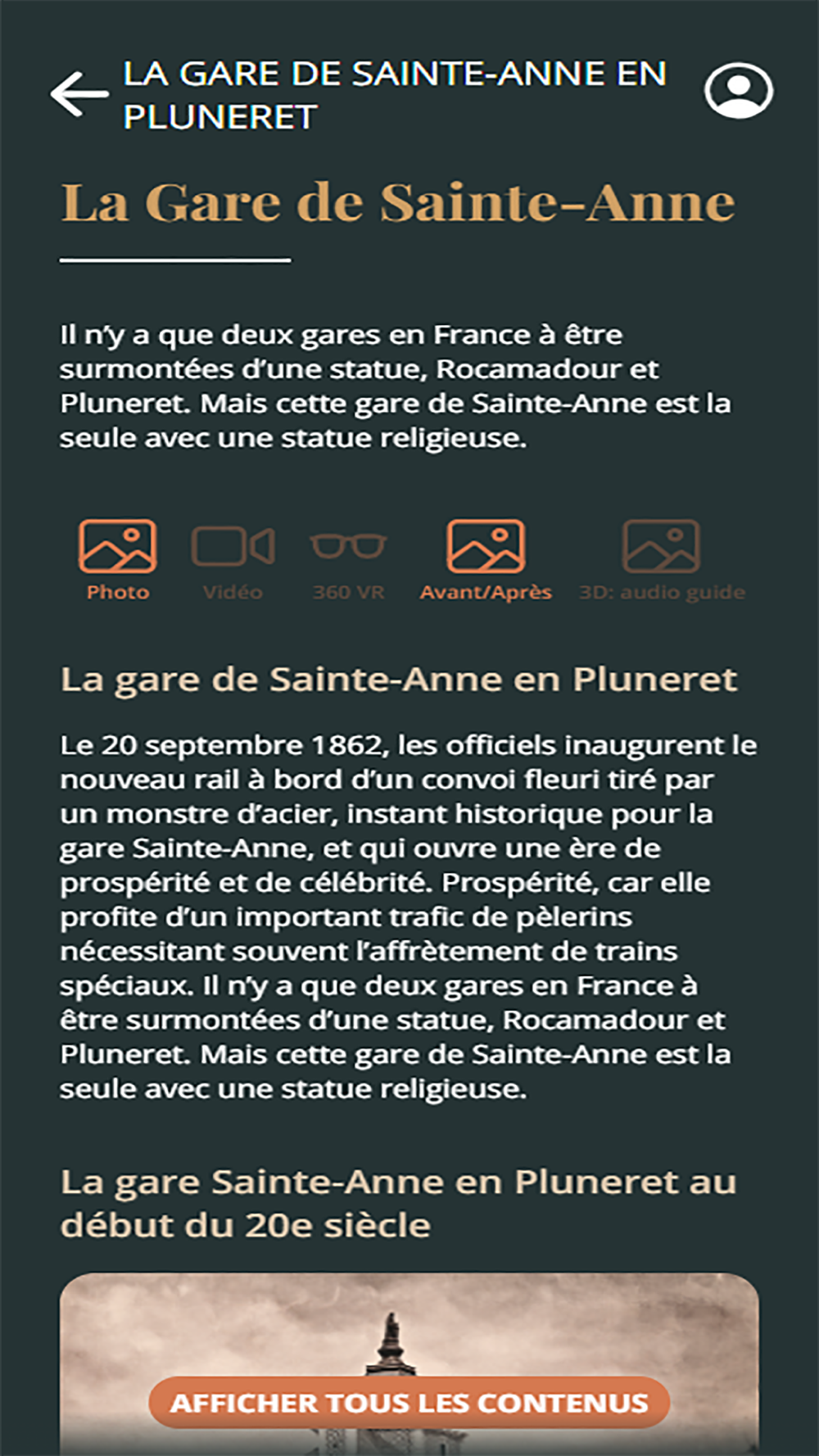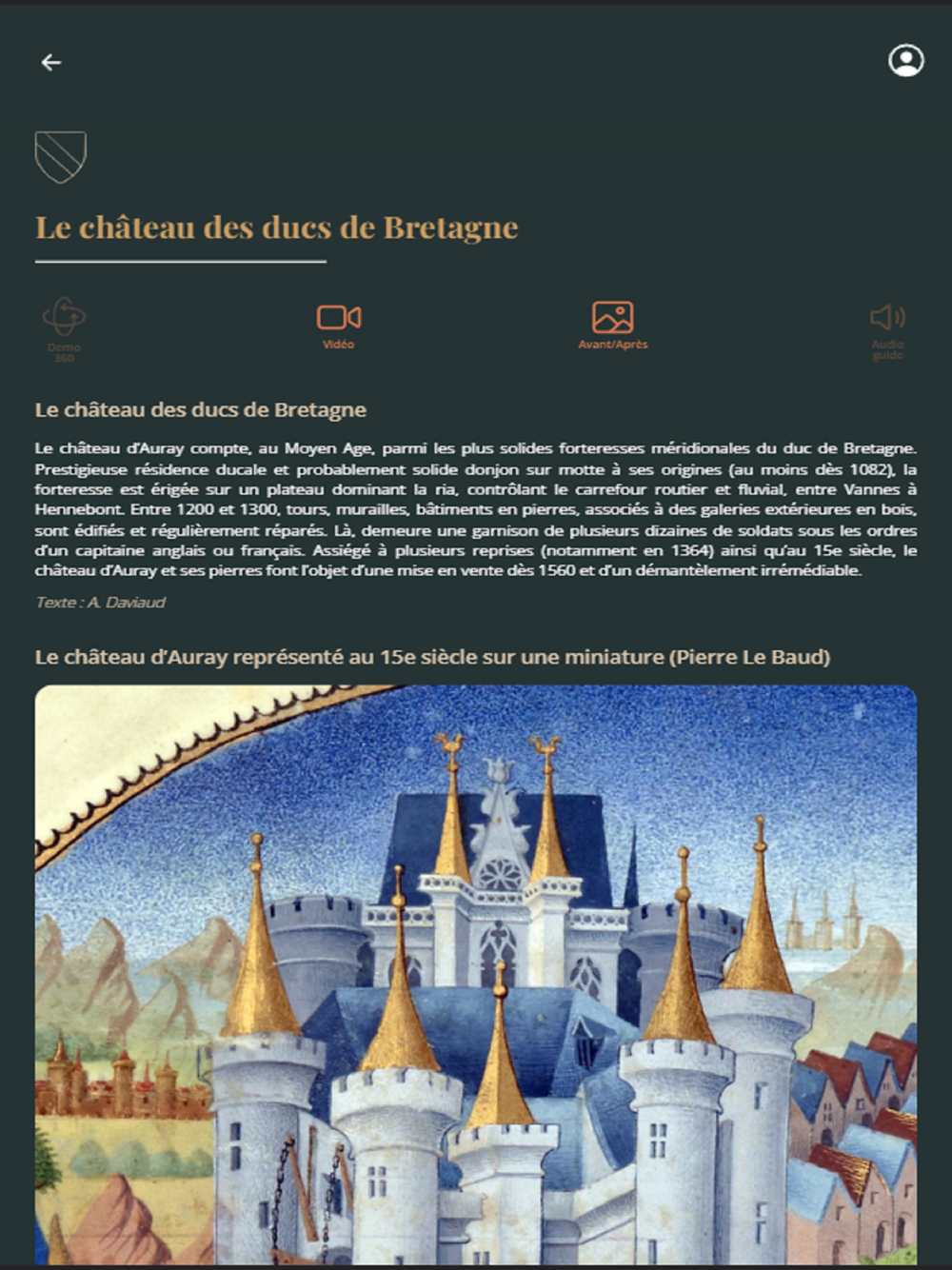 Enjoy a vast array of content: 3D simulations in photorealism, 360° with Virtual Reality mode, 2D before/ after tools and relief tools, narrative audio guides...