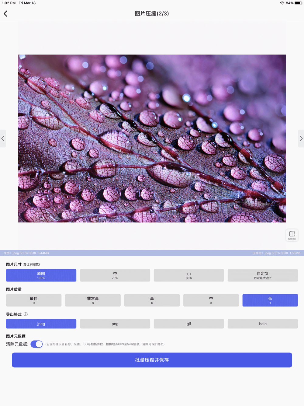 The new compression algorithm can quickly reduce the size of pictures, retain high-definition picture quality, save storage space, and support batch compression!