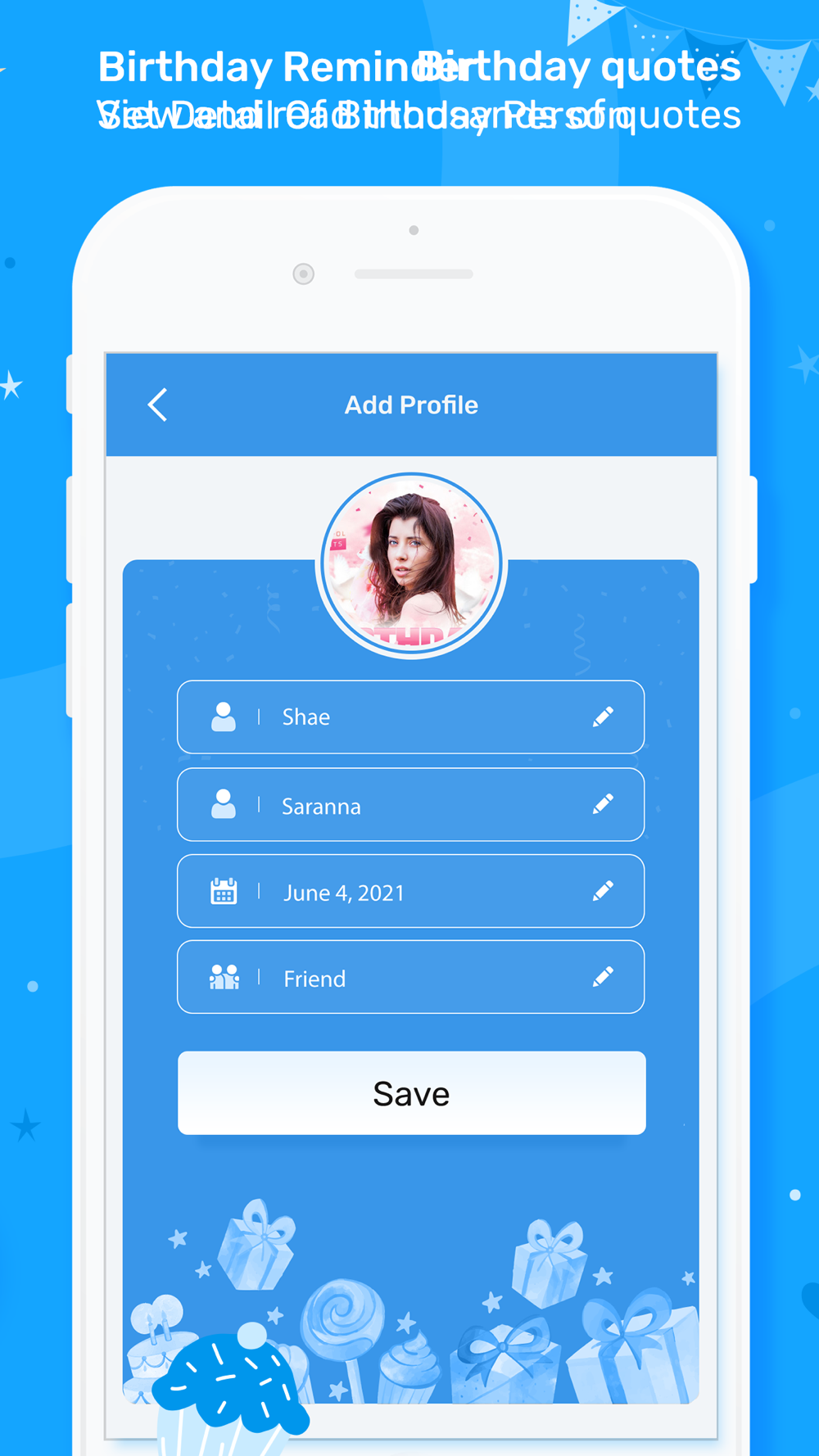 Birthday Reminder reminds you of the birthdays of all your friends and family and no longer have to worry about losing someone due to pure negligence and forgetting. Warm their souls and make them smile with the ultimate birthday countdown reminder app! The notifications remind you of all birthdays and you can choose to set a reminder even a few days before in order to organize for the gift or surprise party. When the countdown reaches zero and you receive the reminder, the first thing to do is send the birthday wishes! You will surely find your favorite postcard in our collection.