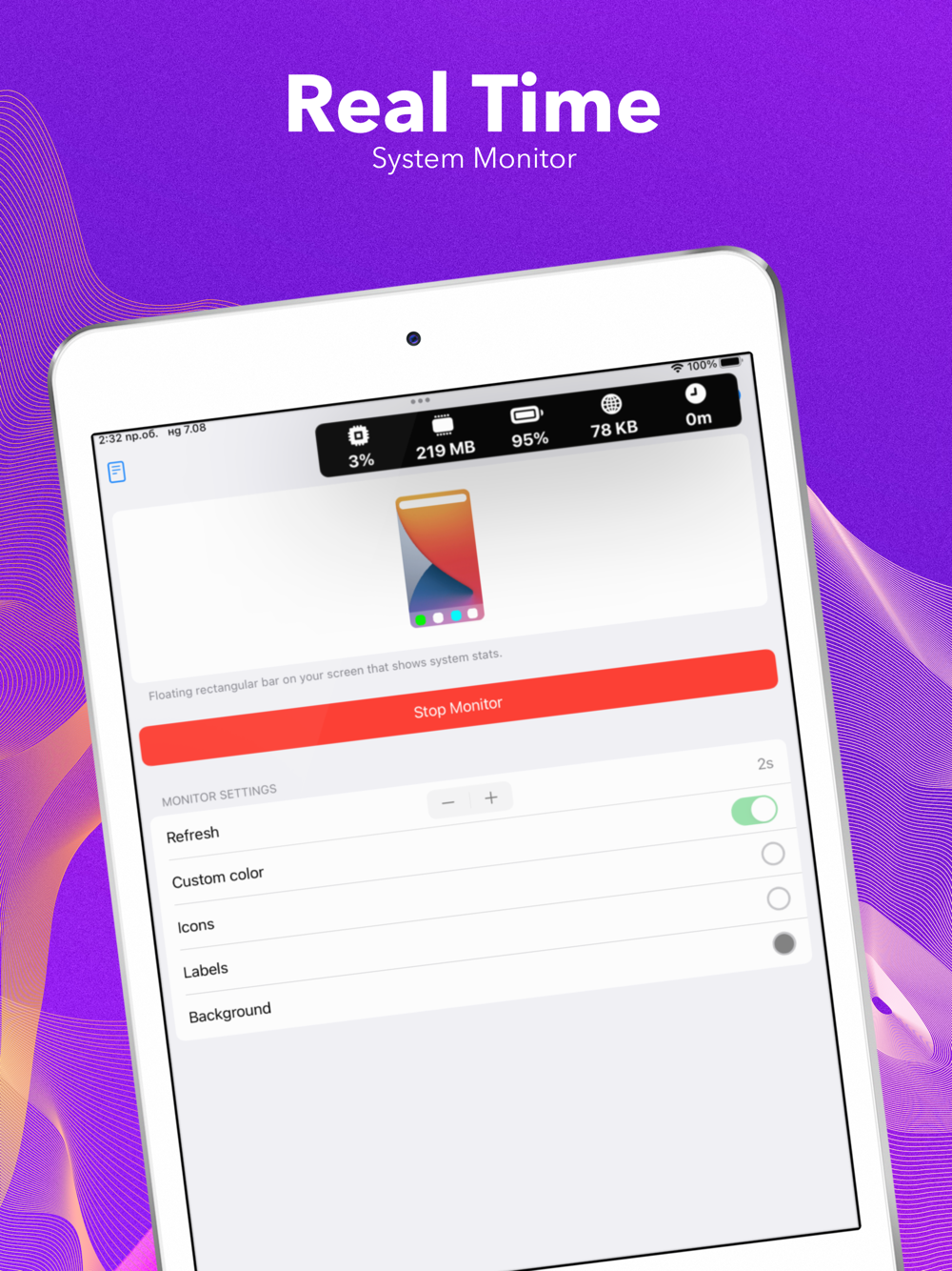 System Stats is an app that allows you to monitor system usage in real time while using your iPhone/ iPad.