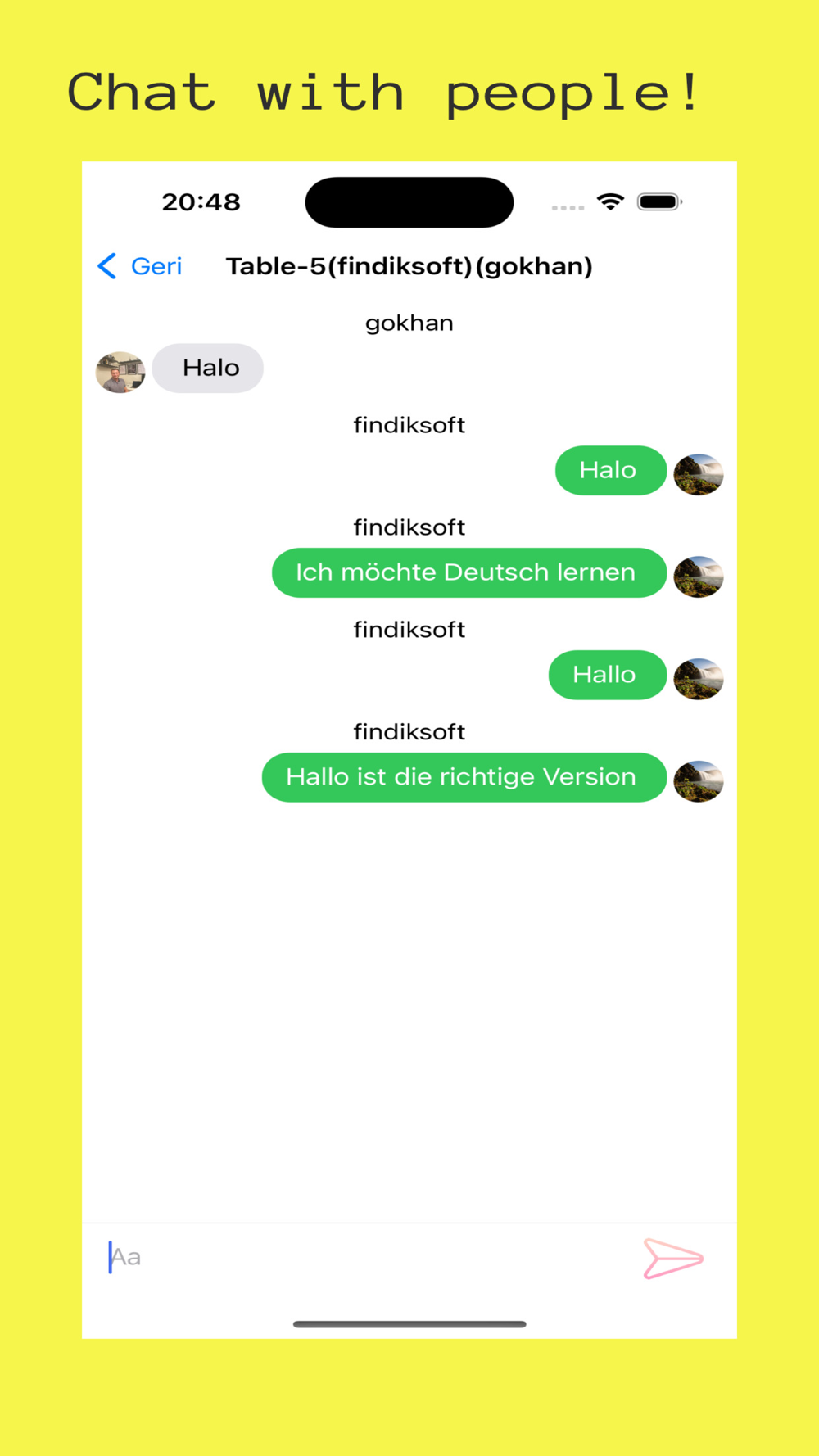 You can even 1-1 chat with other users by choosing chat request in "People Here" section at the cafes
