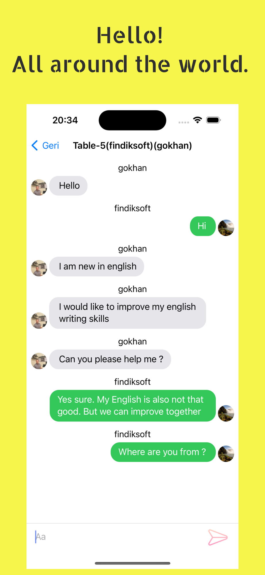 When you sit on chair at the table, the conversation belonging to the table will open up in "Messages" section and you can message with other people sitting who is at the table.