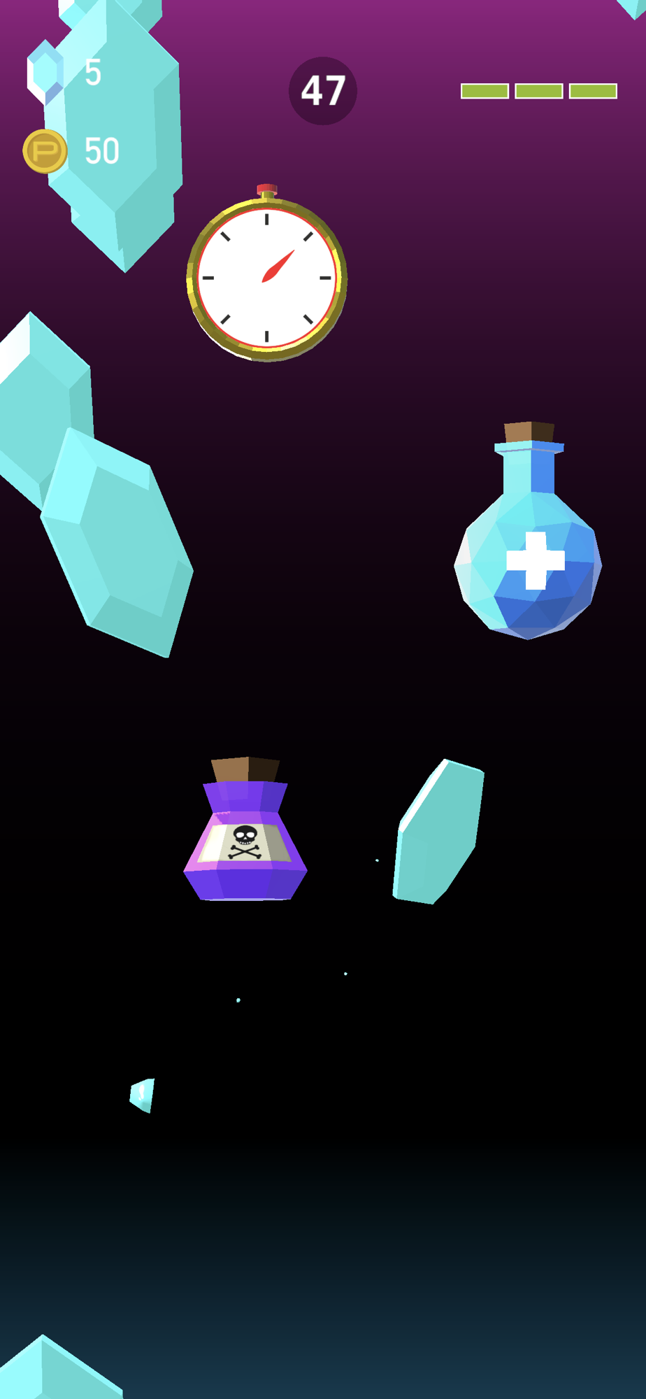 Use your fingers to cut the diamonds and other important objects, but watch out for bombs and poison bottles.