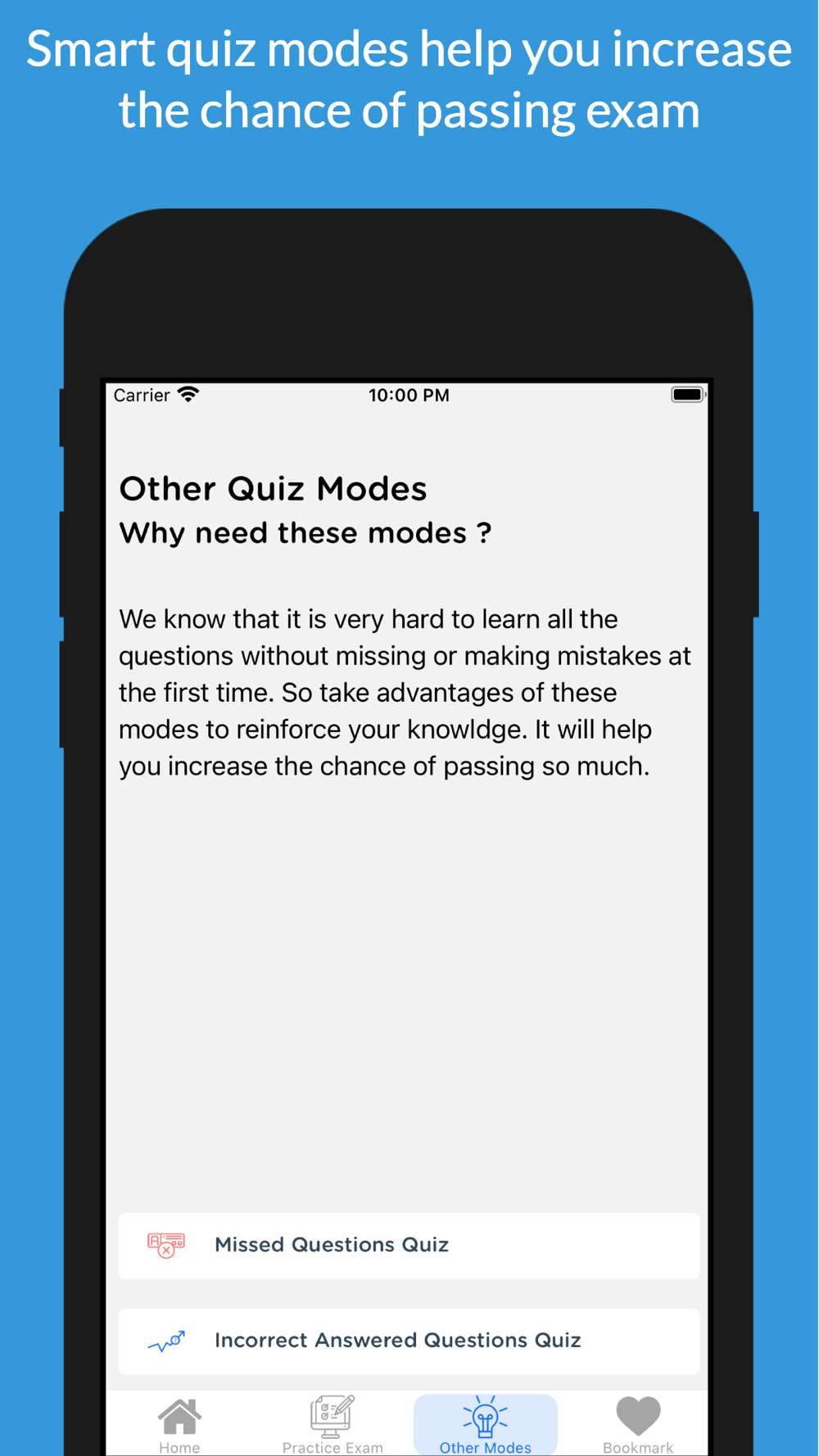 4.Examination mode will help you take test like a real exam. So you will be more confident.