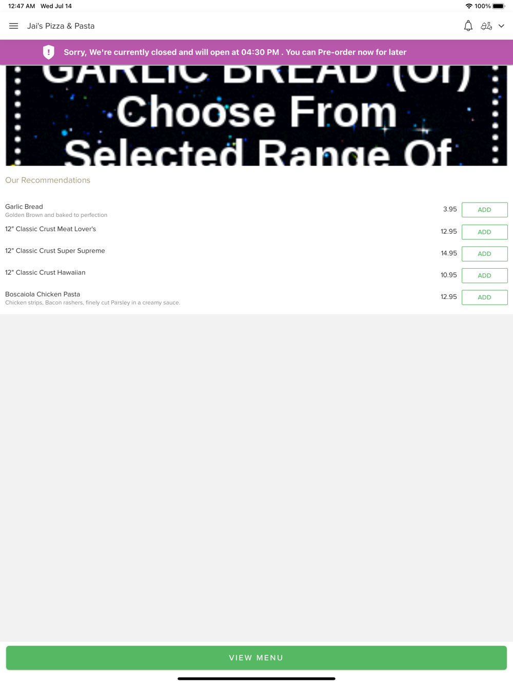 Here at Jai's Pizza & Pasta, we are constantly striving to improve our service and quality in order to give our customers the very best experience. As a result, we are finally proud to unveil and introduce our latest improvement, our new online ordering app! You can now relax at home and order your favourite, freshly prepared meals from Jai's Pizza & Pasta in Richmond. You can even pay online!