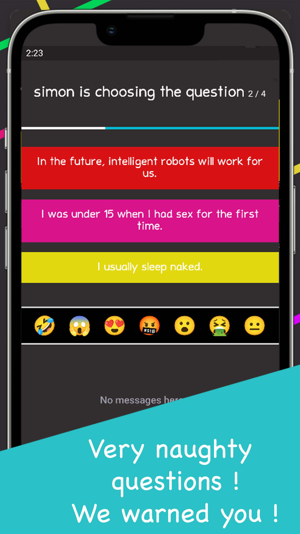 Start a game of Konfess, choose a theme from a selection of all the more daring than the others and invite friends to join the game.