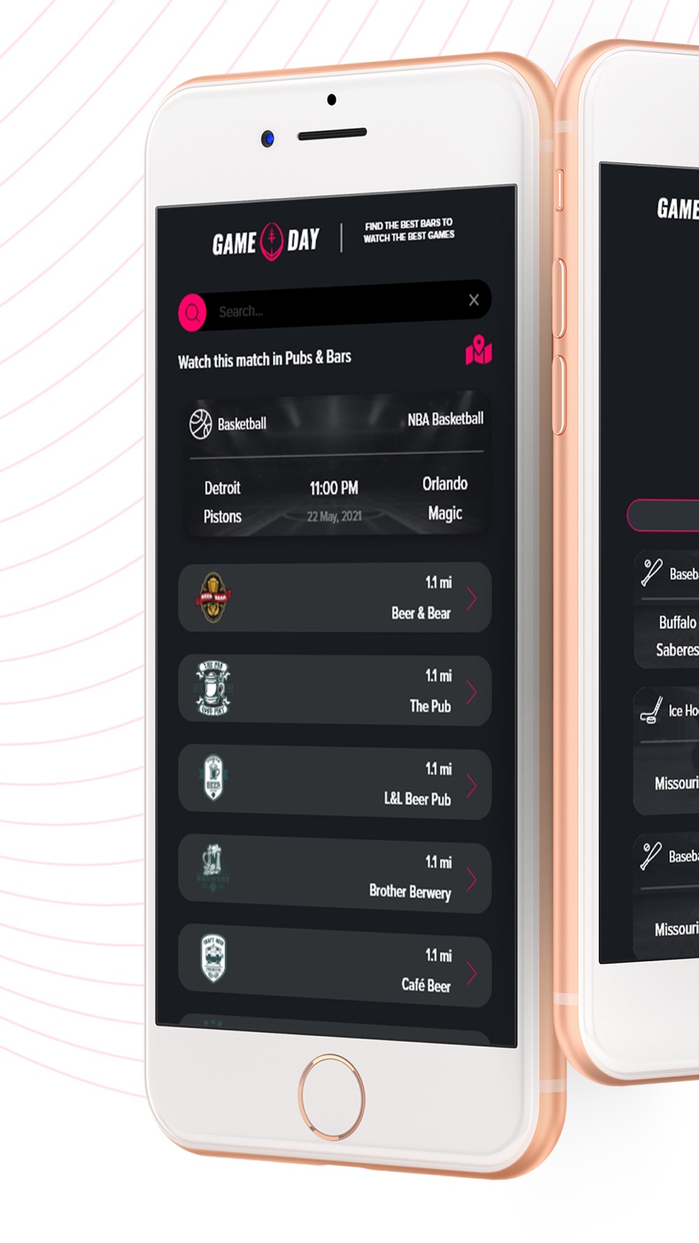Gameday - live & watch sports on TV at your nearest sports Pubs & Bars. Gameday helps you find the nearest sports bars or pubs near you!