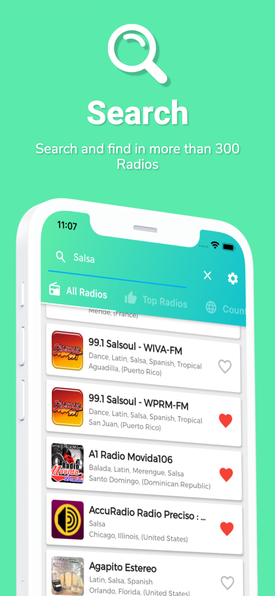 - Search over 300 Radio Stations