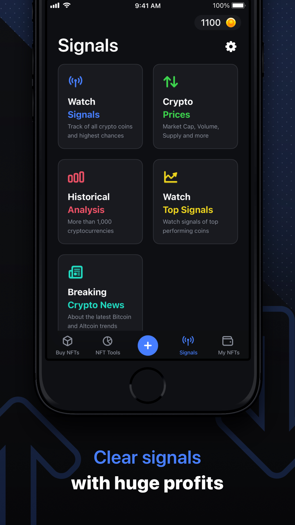 With the Top Crypto Coins & NFT Maker app you no longer need to spend days or weeks figuring out what crypto to buy. Our AI algorithms with the help of our top-notch team, built a basket of signals (watchlist).
