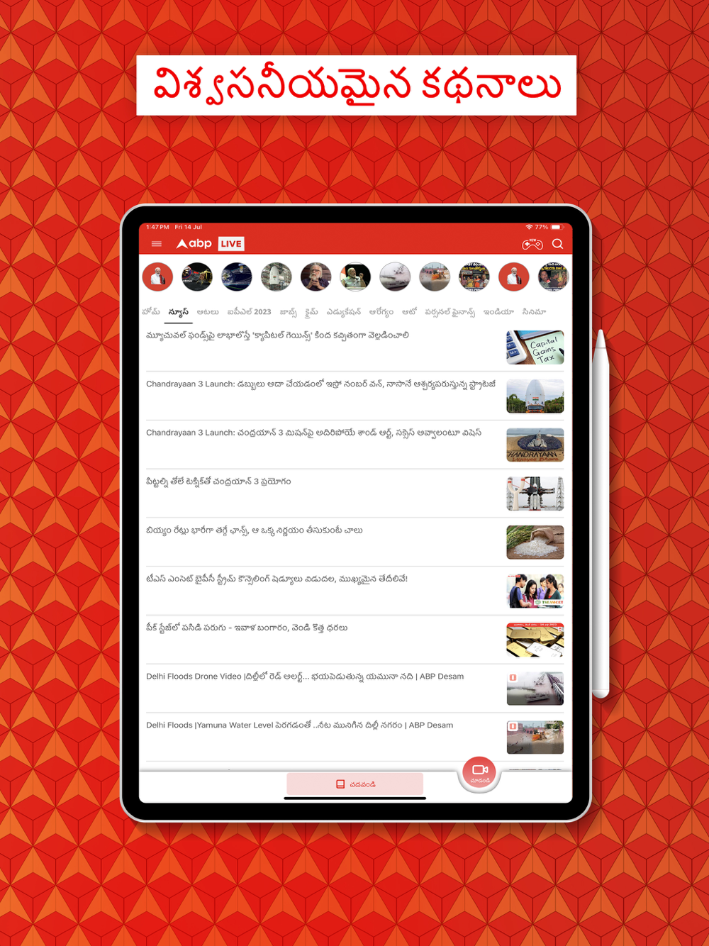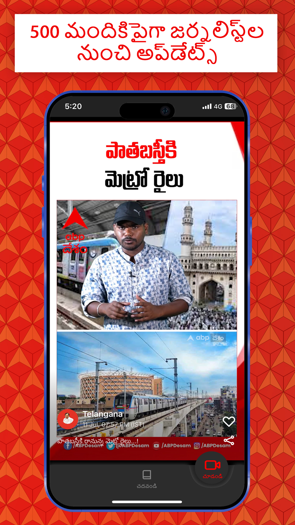 Download the ABP Desam News app on your phone and watch ABP Desam news channel Live Tv and get all the latest updates of news from Andhra Pradesh, Telangana, Hyderabad, Secunderabad, Warangal, Amaravati, Vijayawada, Vishakapatnam, Tirupati from wherever you are, read all the latest news, watch Live TV 24x7, News Videos and see the latest pictures with ABP Desam App.