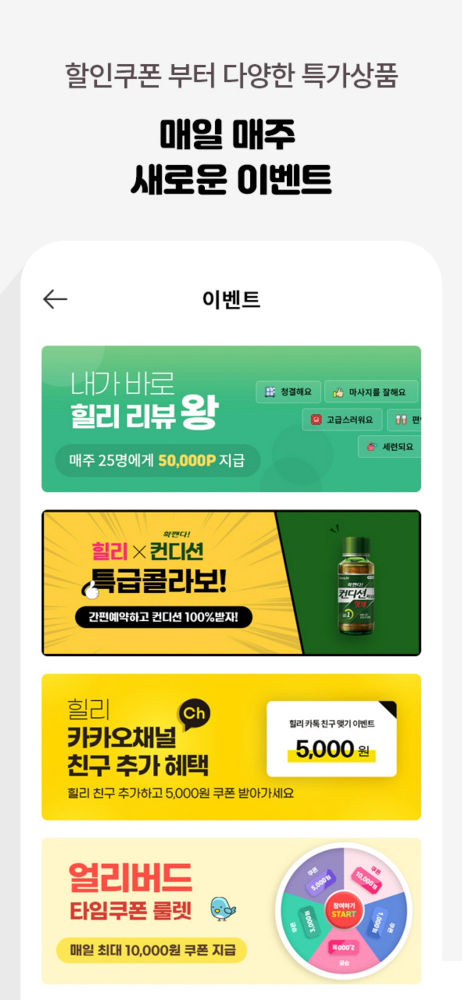 ▶ 매일 쏟아지는 힐리의 ‘할인 혜택’ 프로모션