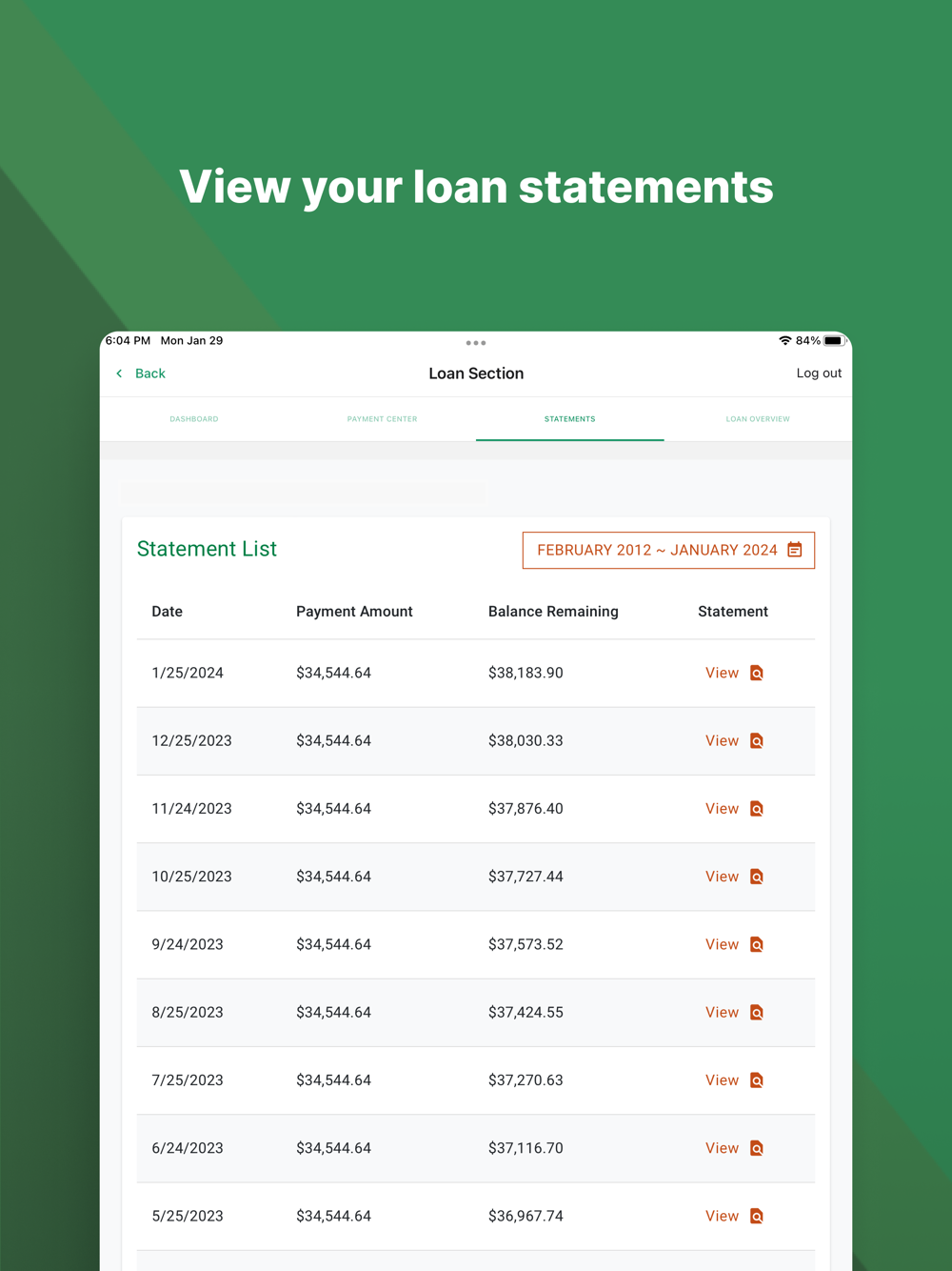 With the Service Finance Borrower App, it is easier than ever to manage your account on the go. View account balances, billing statements, make one-time payments, schedule recurring payments and more!