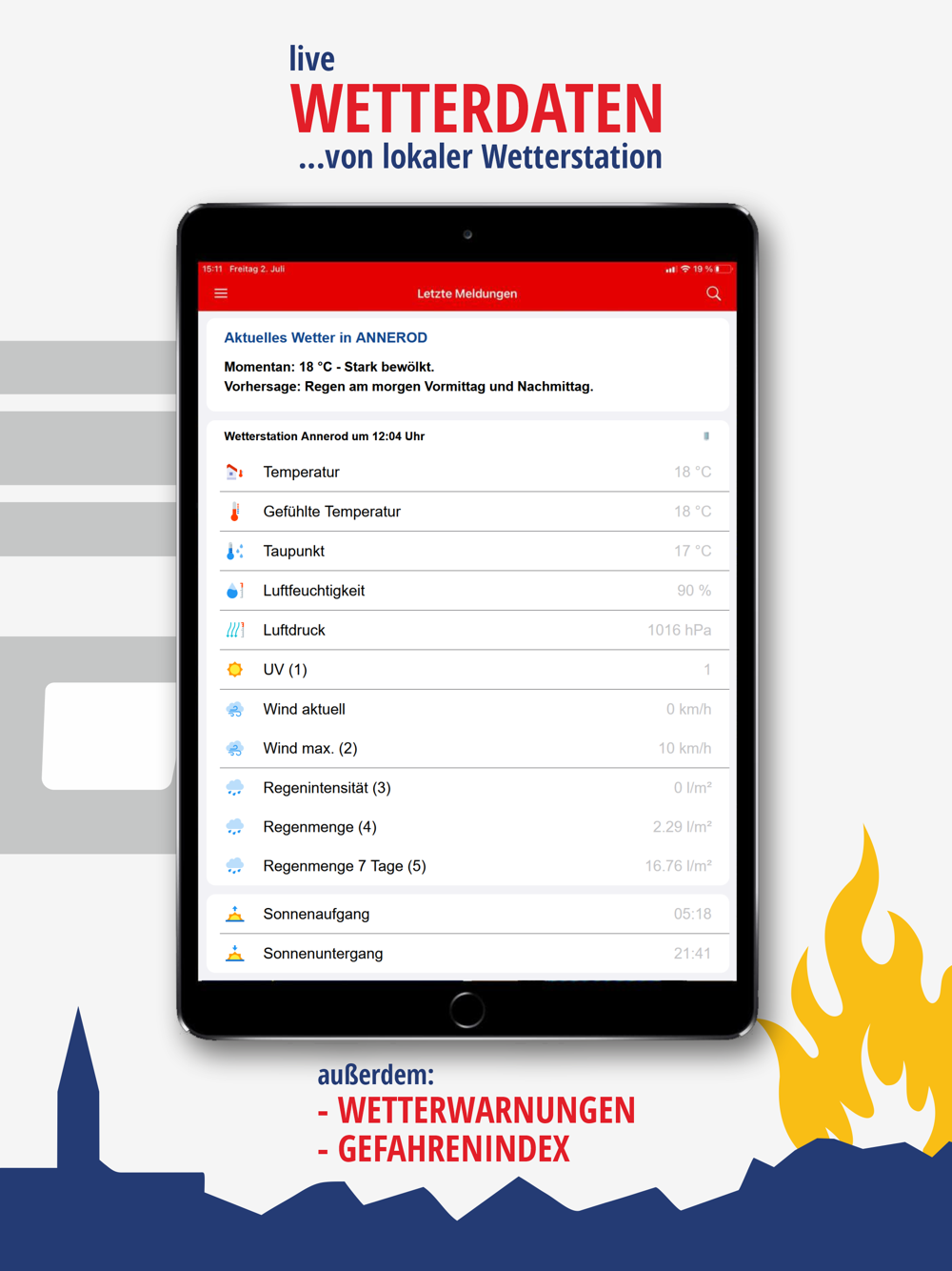 Über Push-Mitteilungen sind wir in der Lage euch direkt die Infos auf den Bildschirm eures Smartphones zu senden. Aktuelle Anneröder Wetterdaten runden unser Informationsangebot ab.