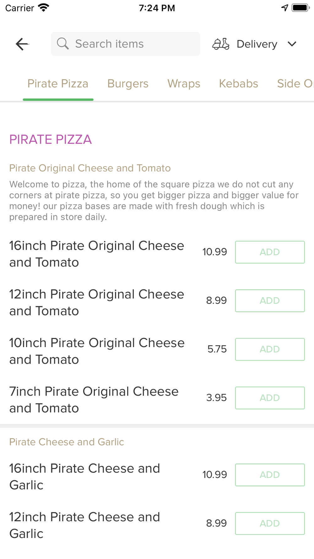 Order food online from Pirate Pizza! It's so easy to use fast and convenient. Try our new online app which contains our entire takeaway menu.You can now order online all your favourite dishes and many more delicious options, and have them delivered straight to your door in no time at all.