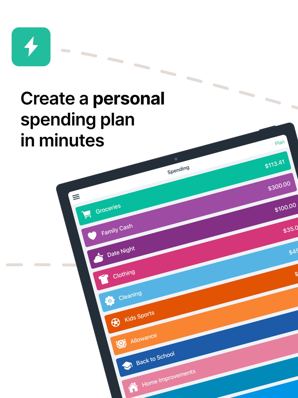 - Create a personal spending plan in minutes