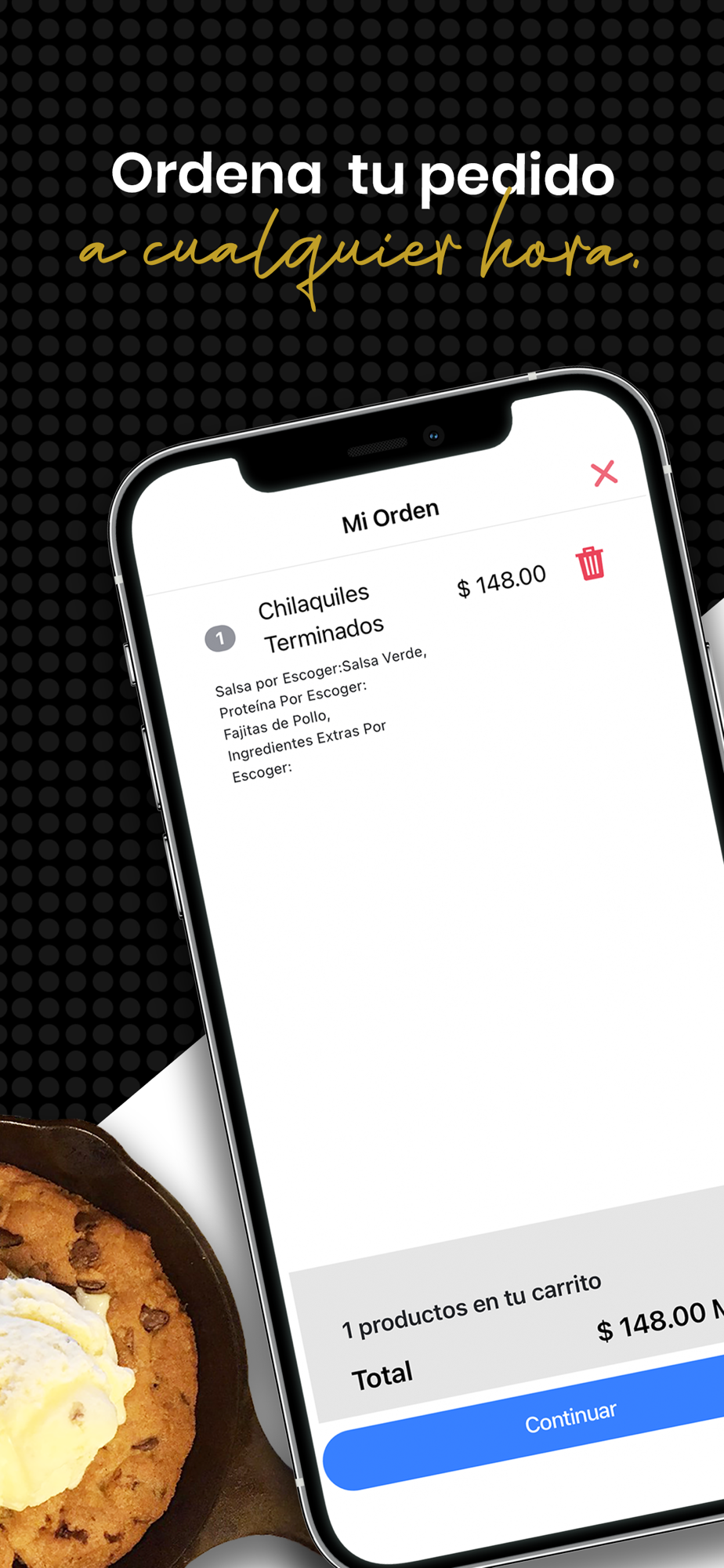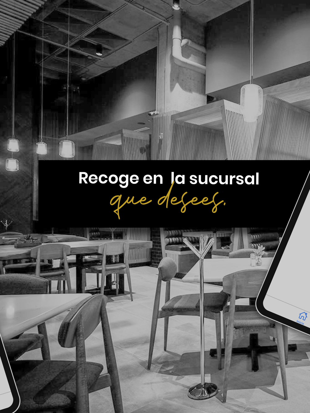 Descarga nuestra app, ordena y recoge nuestros mejores platillos para llevar, todo desde tu dispositivo móvil.