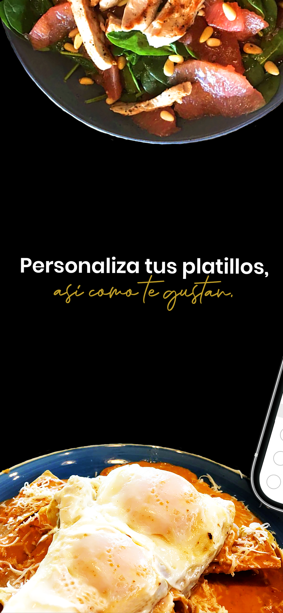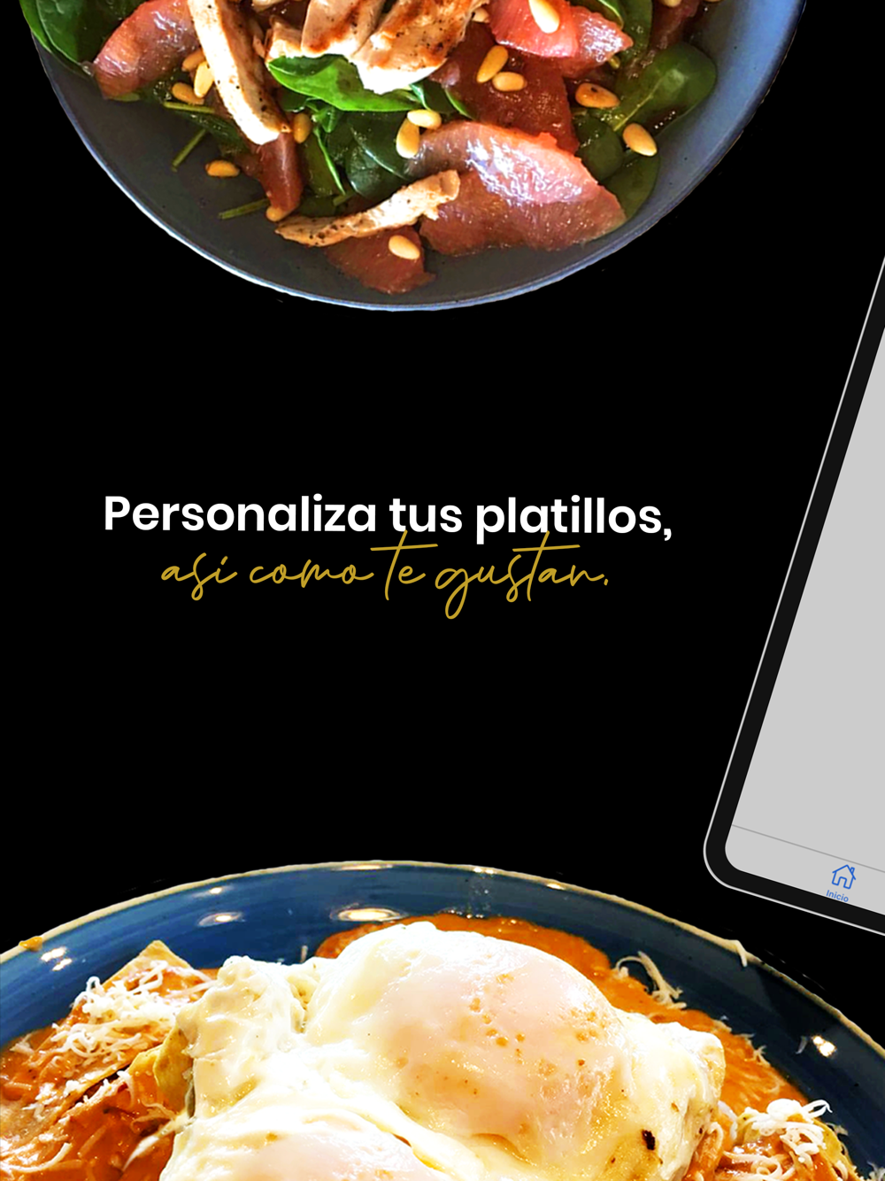 Disfruta la experiencia de nuestros platillos en tu casa, pide tus platillos favoritos para ti y tu familia, personaliza tu orden con proteínas e ingredientes extras, todo de forma rápida y sencilla.