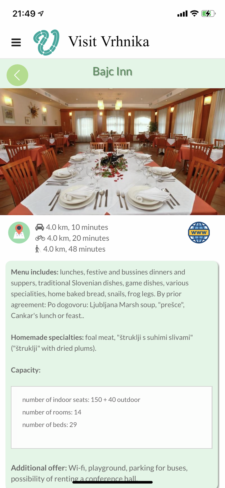 A mobile guide to historical and natural resources and other points of interest in the city of Vrhnika, Slovenia. Includes GPS guiding and road navigation routes.
