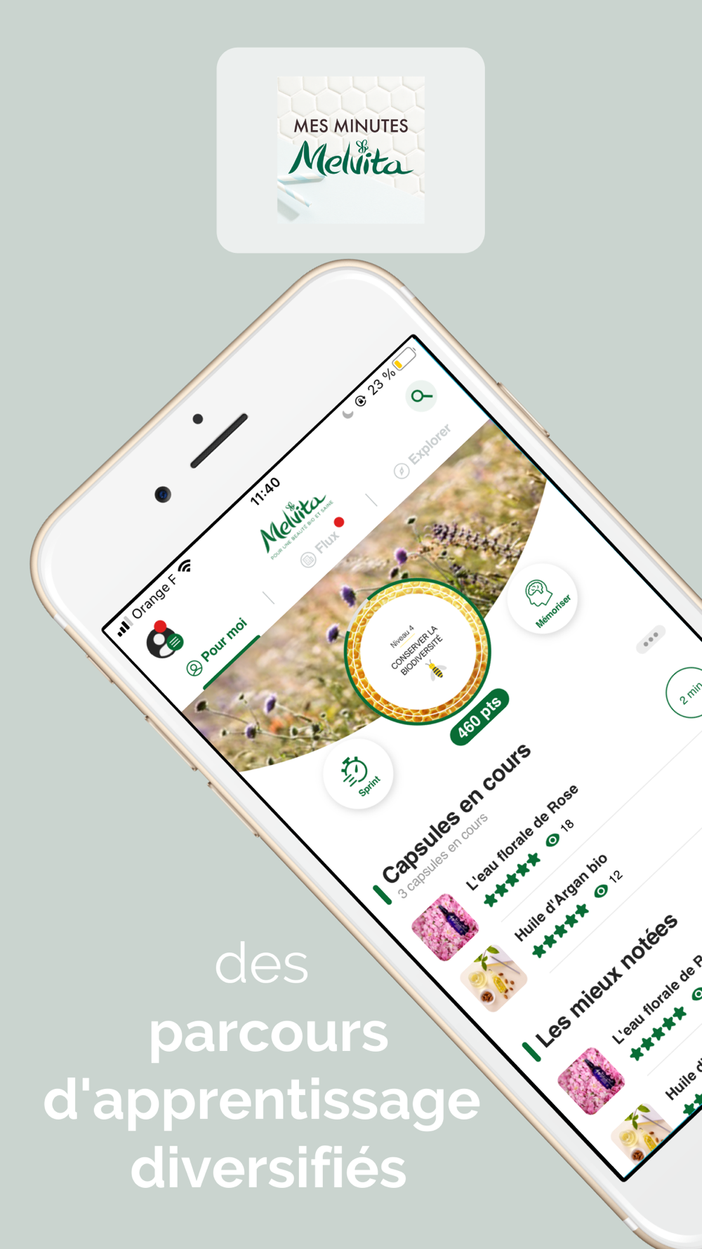 Quelques minutes d'apprentissage Melvita par jour en tout temps et tous lieux sur votre mobile