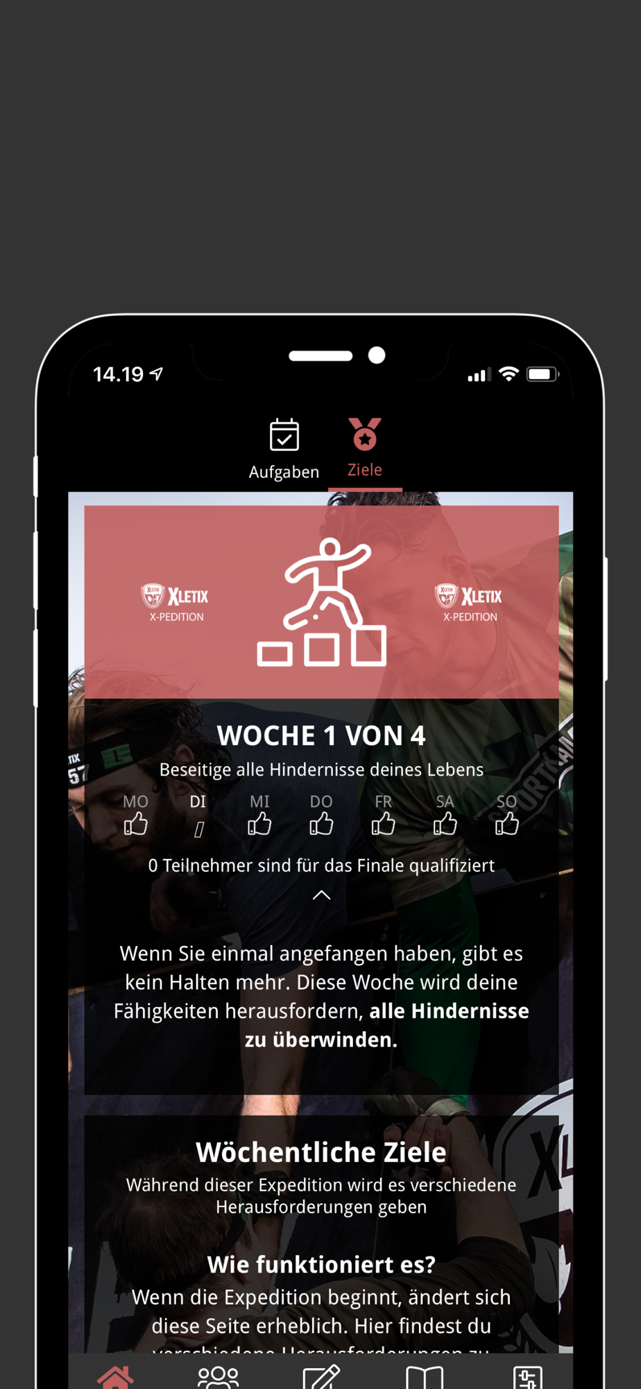 Nutze die App, um an der 28-tägigen XLETIX X-PEDITION teilzunehmen, täglich gesunde Punkte zu sammeln und so deinen Lebensstil nachhaltig zu verbessern. Vorab musst du dich über unsere Website xletix.7peaks.app registriert haben. Mit der App hast du deine Verhaltensweisen und deinen persönlichen Fortschritt stets im Blick. Über Chat- und Postfunktionen tauscht du dich mit deinen Teammitgliedern aus - gegenseitig motiviert ihr euch und bereitet euch auf den Endgegner vor.