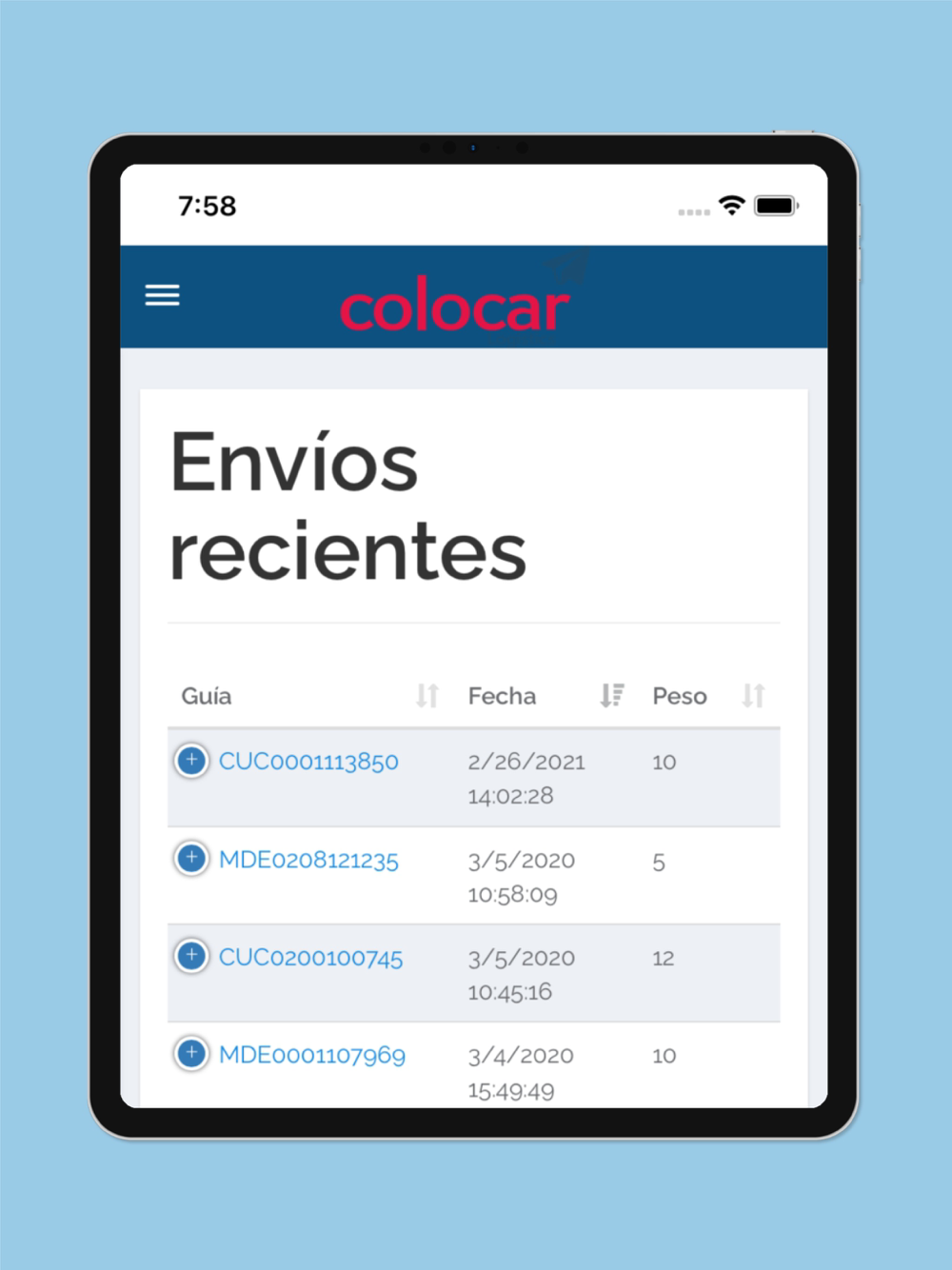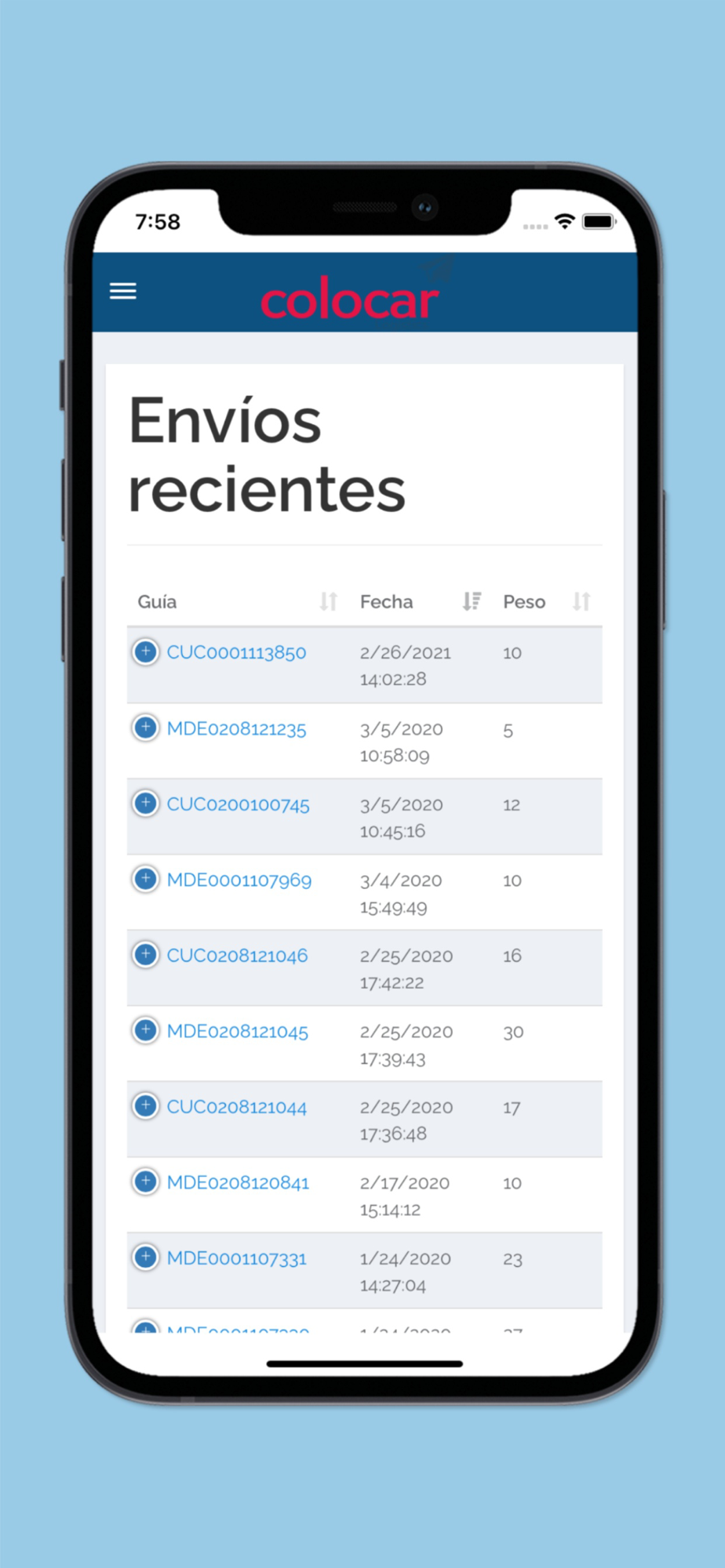 You can find all the information about the tracking of your packages.