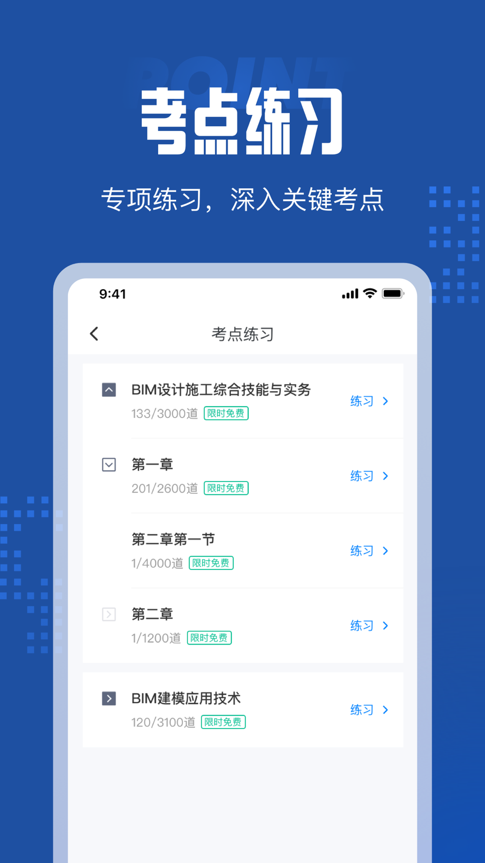 BIM建模师题库内含考点练习,全国通用卷以及地区卷模拟练习,以及按照固定考试比重的随机式的抽题的真题考场,成绩单实时记录考试数据,一点一滴的反馈考生近期学习状态以及自我正确率的提升,大大的给予考生通过考试的信心。