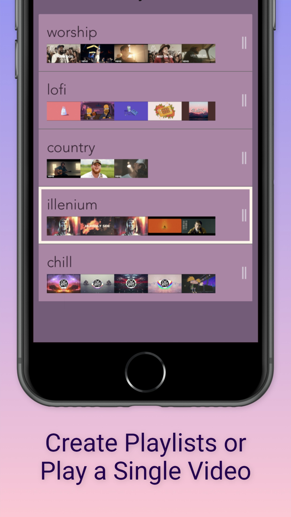 - Can create and save playlists that will play multiple videos for a single alarm or sleep session.