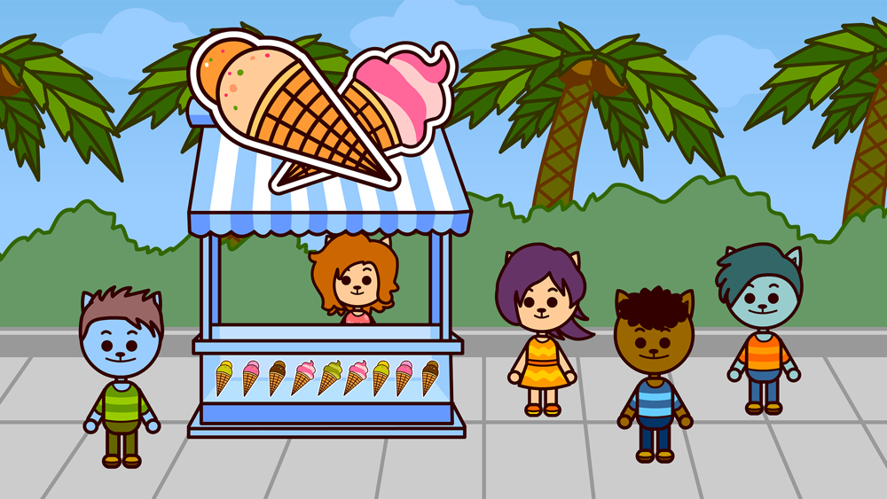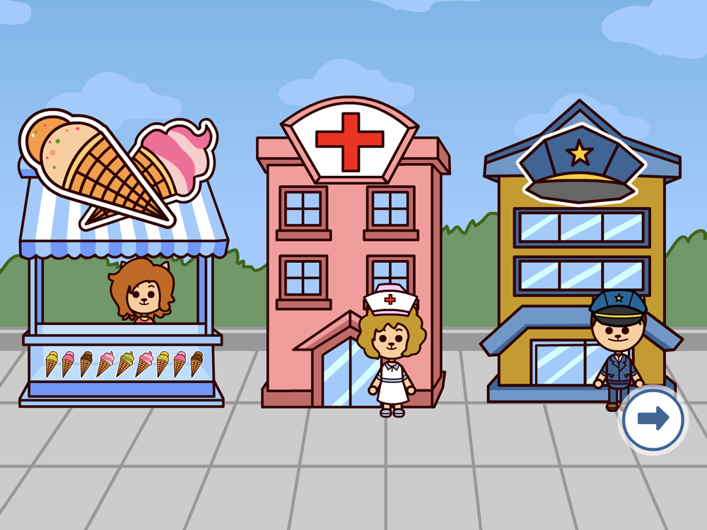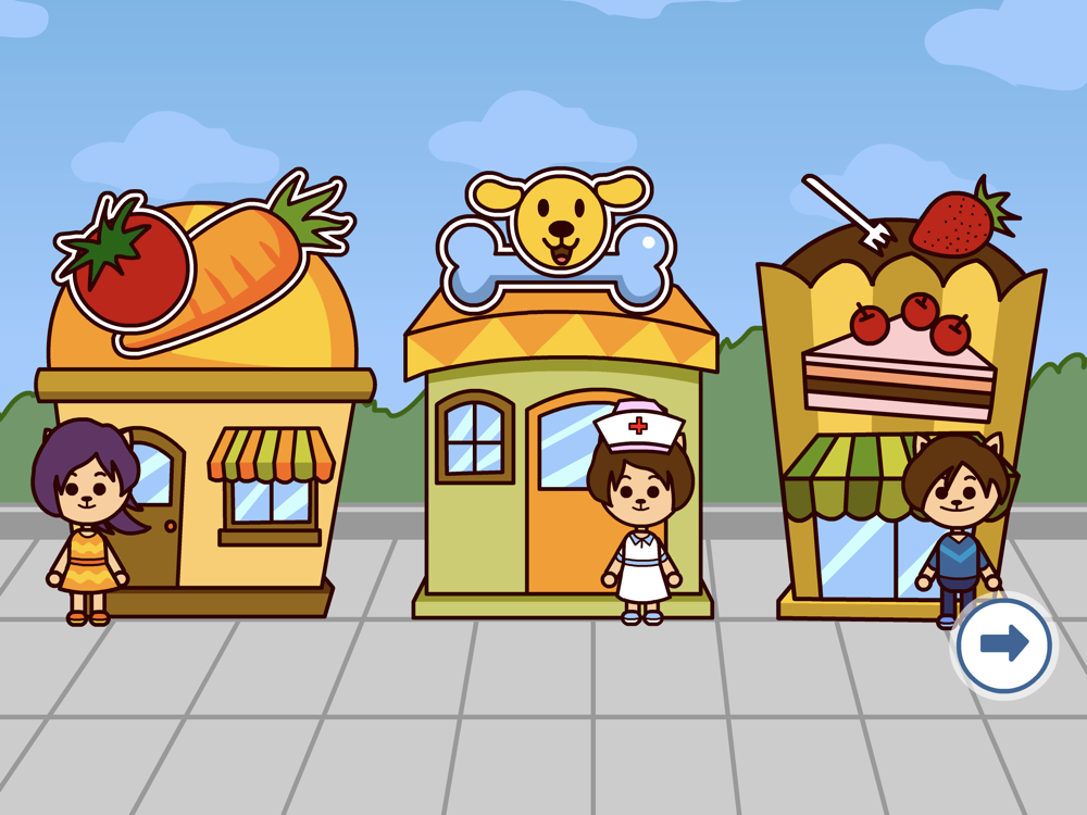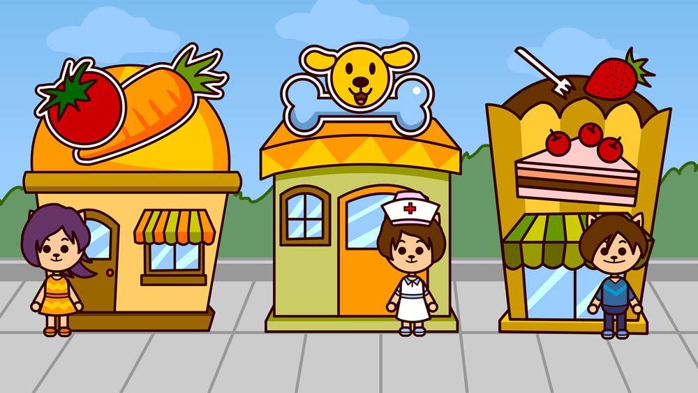 Welcome to the world of cat town. There are ice cream shops, pet shops, hospitals, police stations, fruit and vegetable supermarkets and so on.