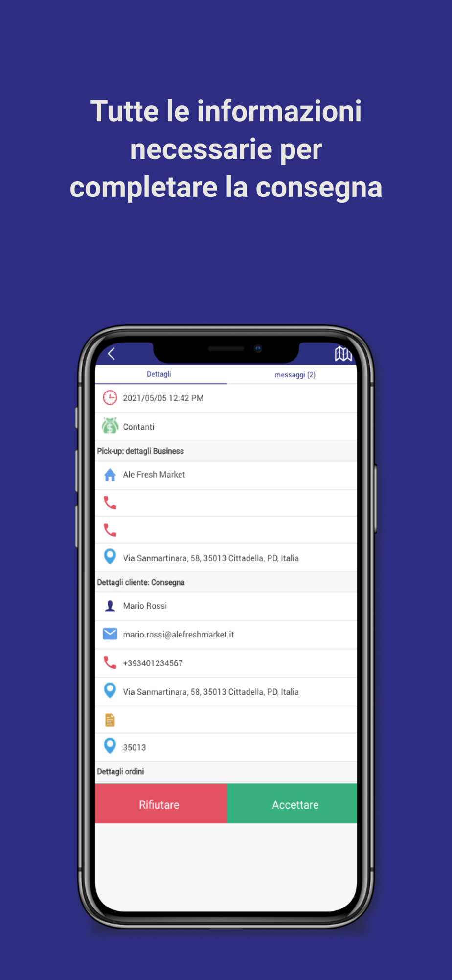 Ricevi gli ordini da parte dei negozi e consegna a domicilio.