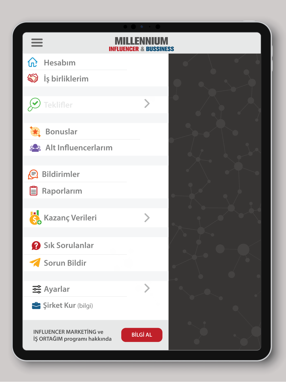 Sisteme Şirketler ve/veya markaların kayıt olmasını sağlayarak, influencerların etkileşimlerini takip ederek bu influencerlar aracılığı ile ürünlerini, markalarını ve/veya hizmetlerini pazarlamalarını, reklamlarını yapmalarını teklif edebildikleri eğer anlaşma sağlanırsa da iş ortaklığı sürdürmelerini sağlamaktadır.