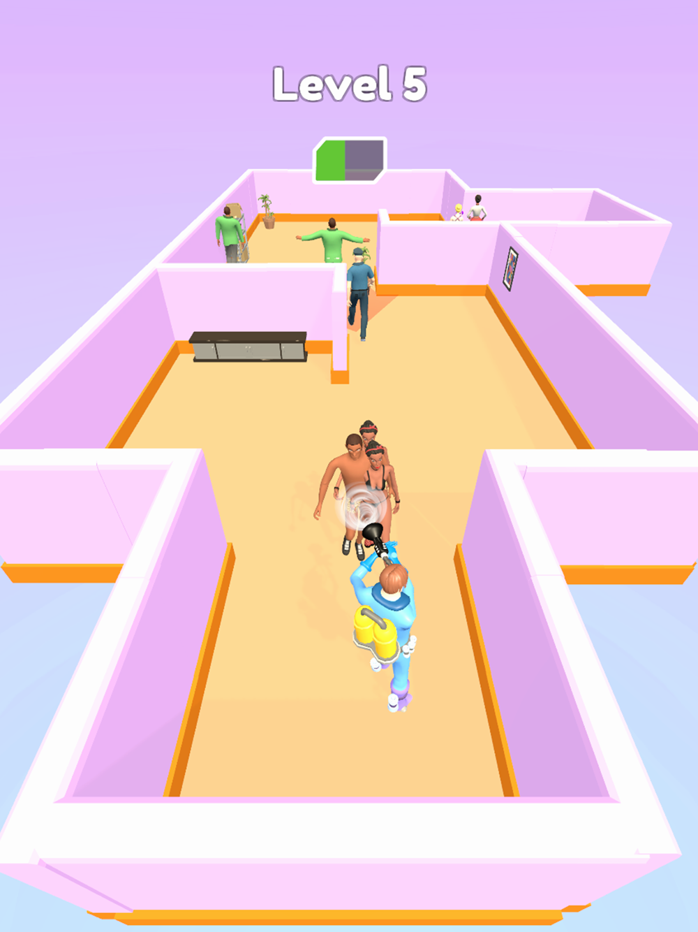 Clear each stage by using your vacuum to SUCK THE CLOTHES OFF everybody! But be careful to avoid the police patrols. If you suck their clothes off, you’ll end up IN JAIL.