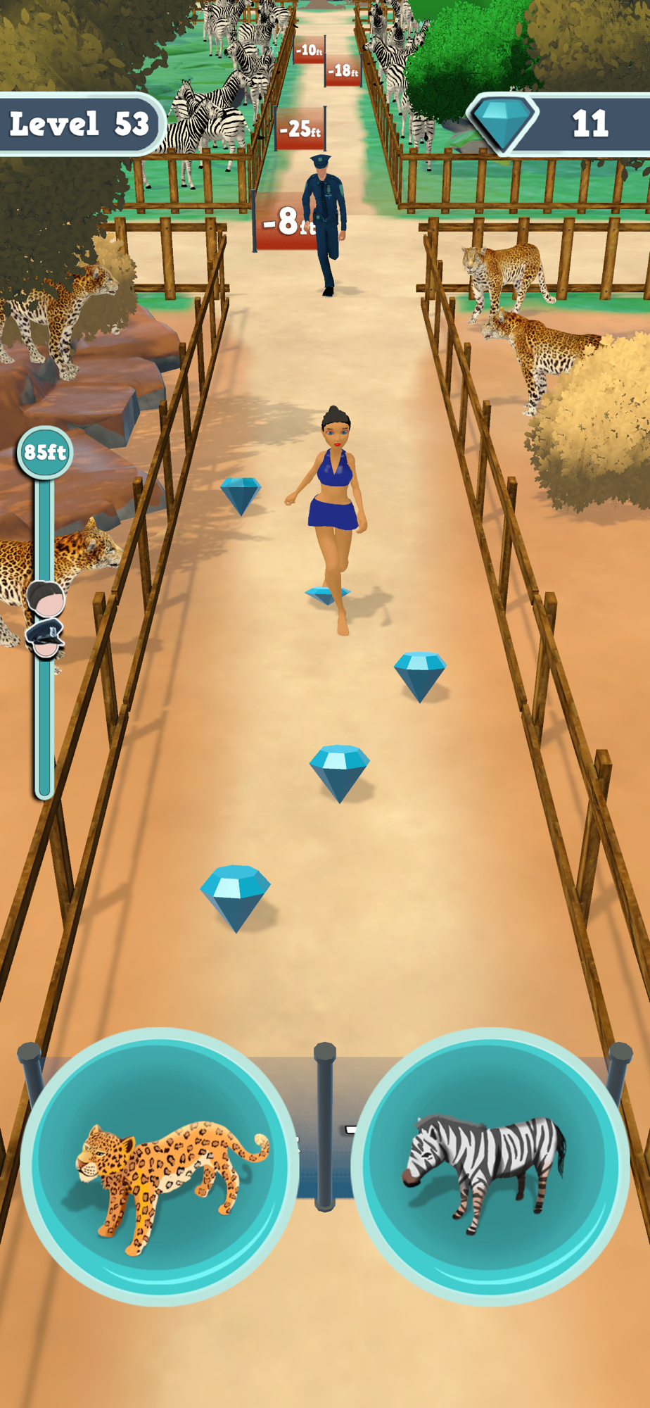 In forest, there are tigers, pigs, zebras, and many others. For example, while this girl is passing through the tigers, you can choose tiger option to wild body paint and costume for the thin girl. So, tigers cannot notice the girl. And she can pass to next area. You must choose correct option every time for the girl to be wild painted according to animal area. Pigs and zebras and all others will behave same.