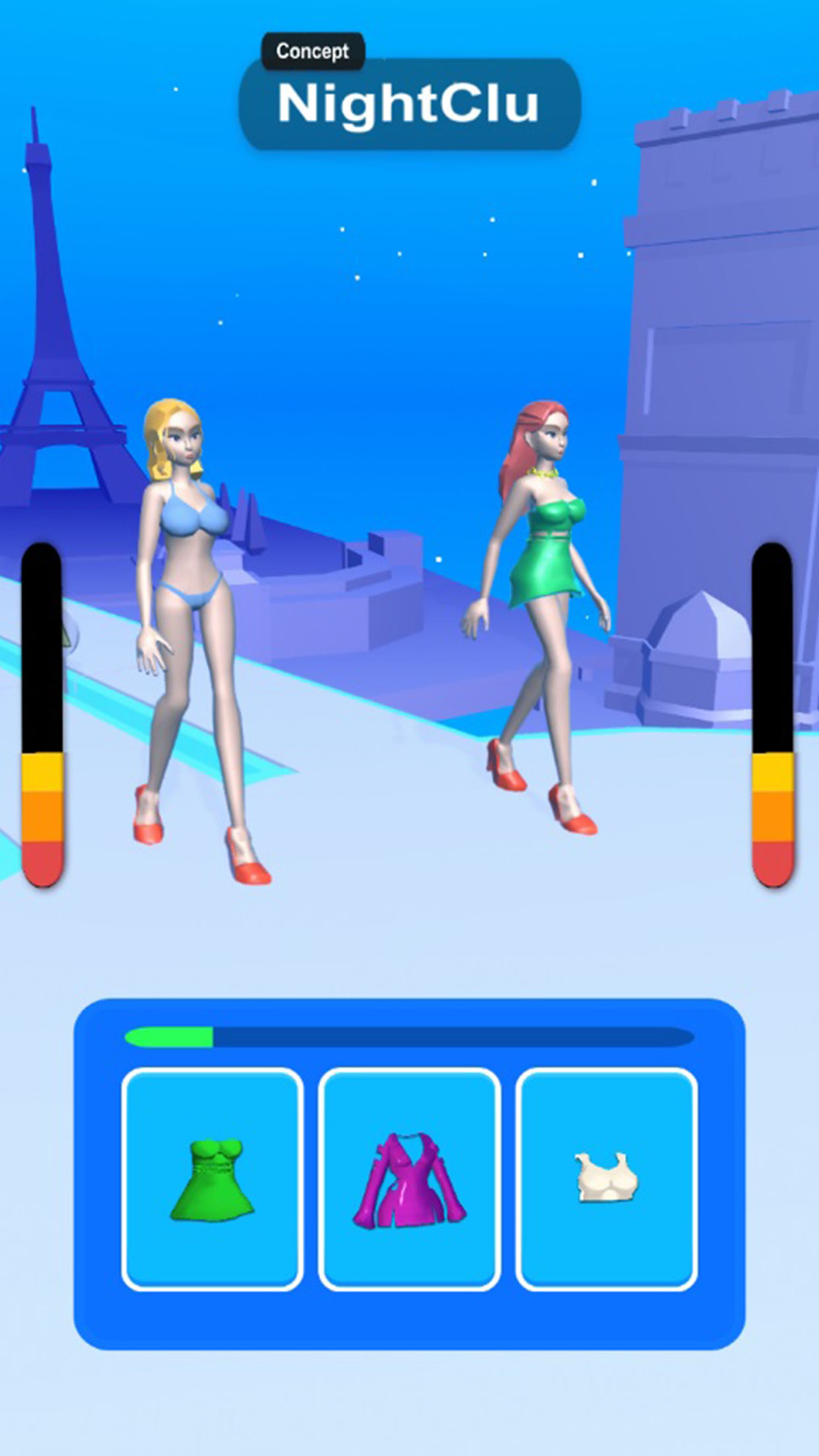 Your goal is to do fashion style the catwalk like a queen. Choose your best clothes for the runway and defeat your opponent!