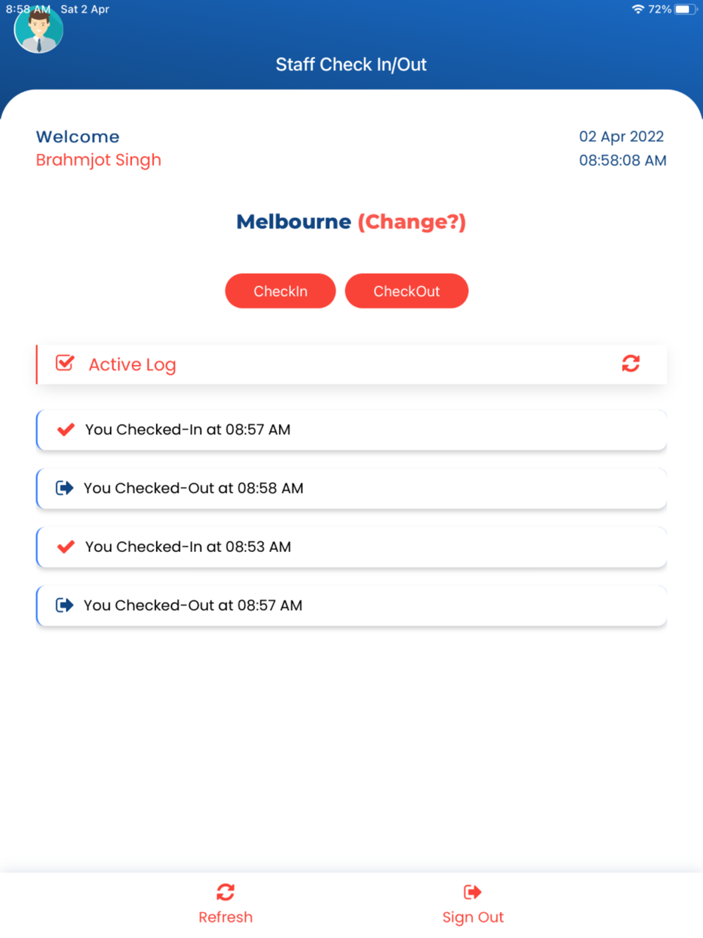 The staff app will let your employees check-in directly from their phones using this app. They can also change locations when traveling.