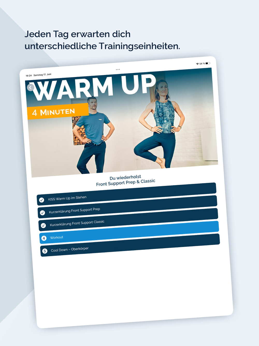 An jedem Übungstag erwartet dich ein anderes Trainingsprogramm.
