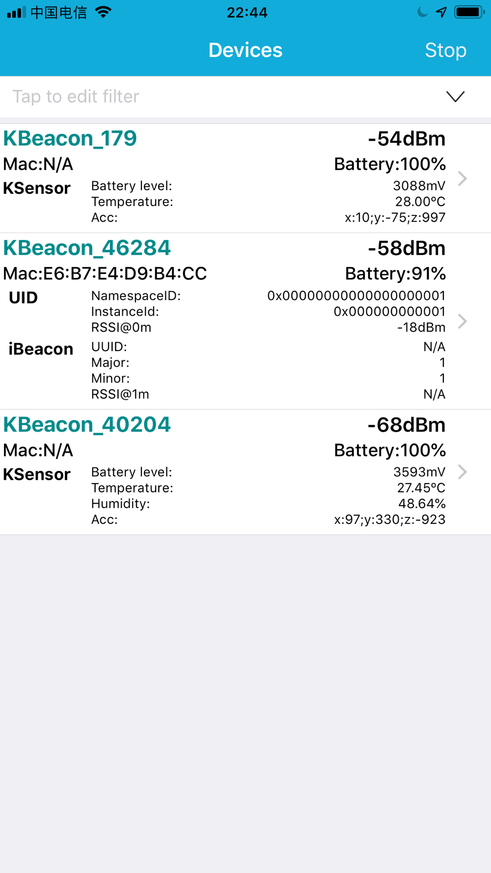 -Scan iBeacon, Eddystone, KSensor advertisement packet;